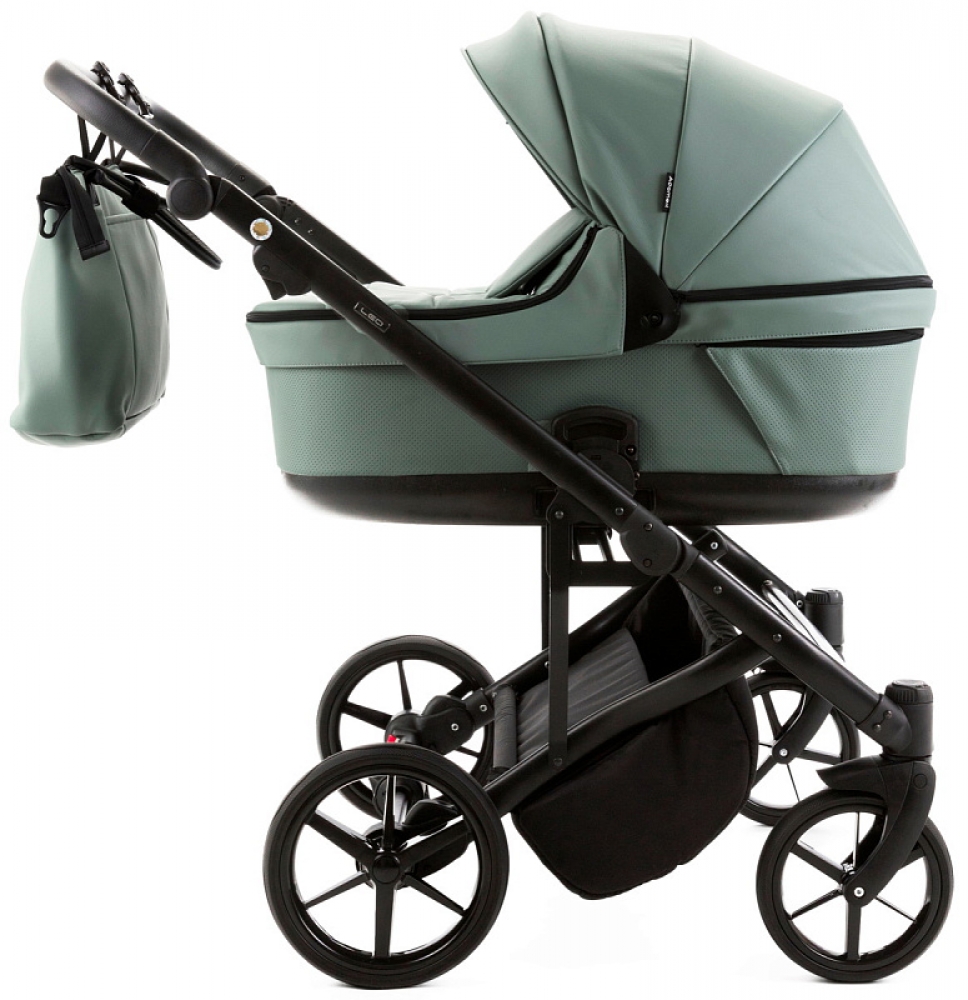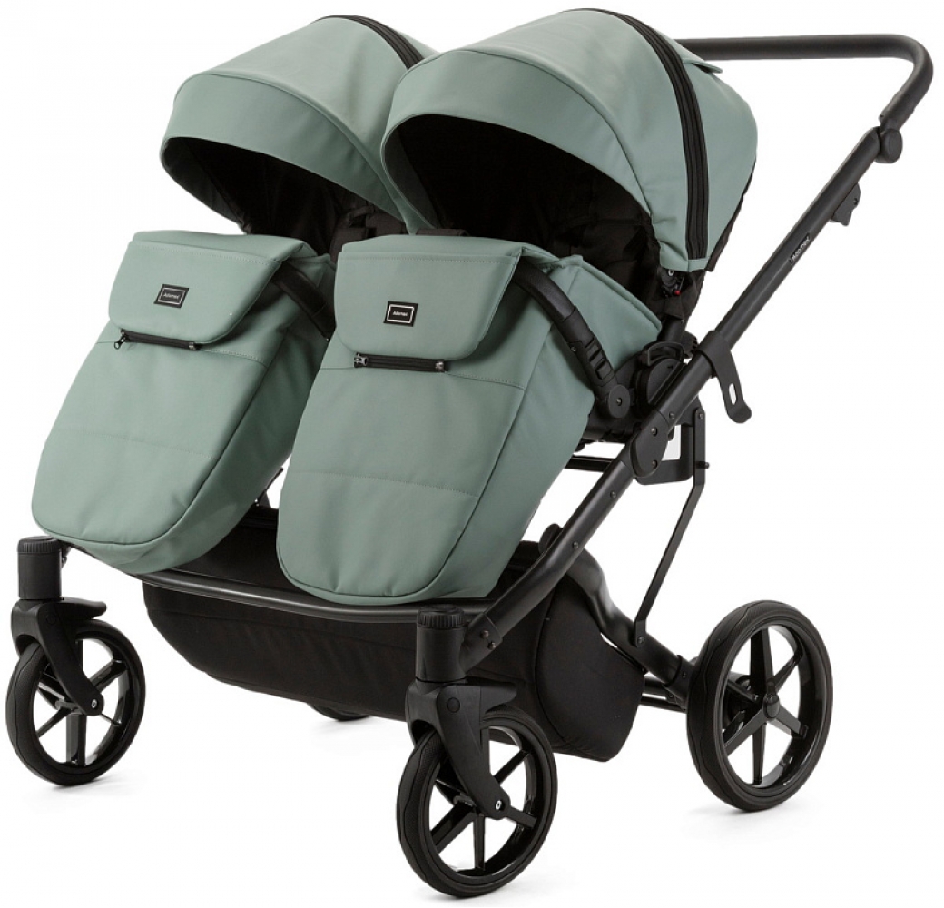 Детская коляска для двойни Adamex Leo Duo Deluxe 3 в 1 DUO-SA20 (СЕРО-ЗЕЛЁНАЯ КОЖА)