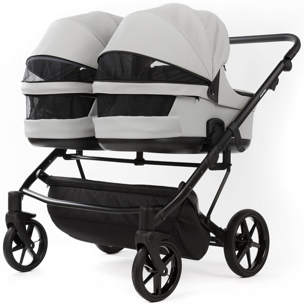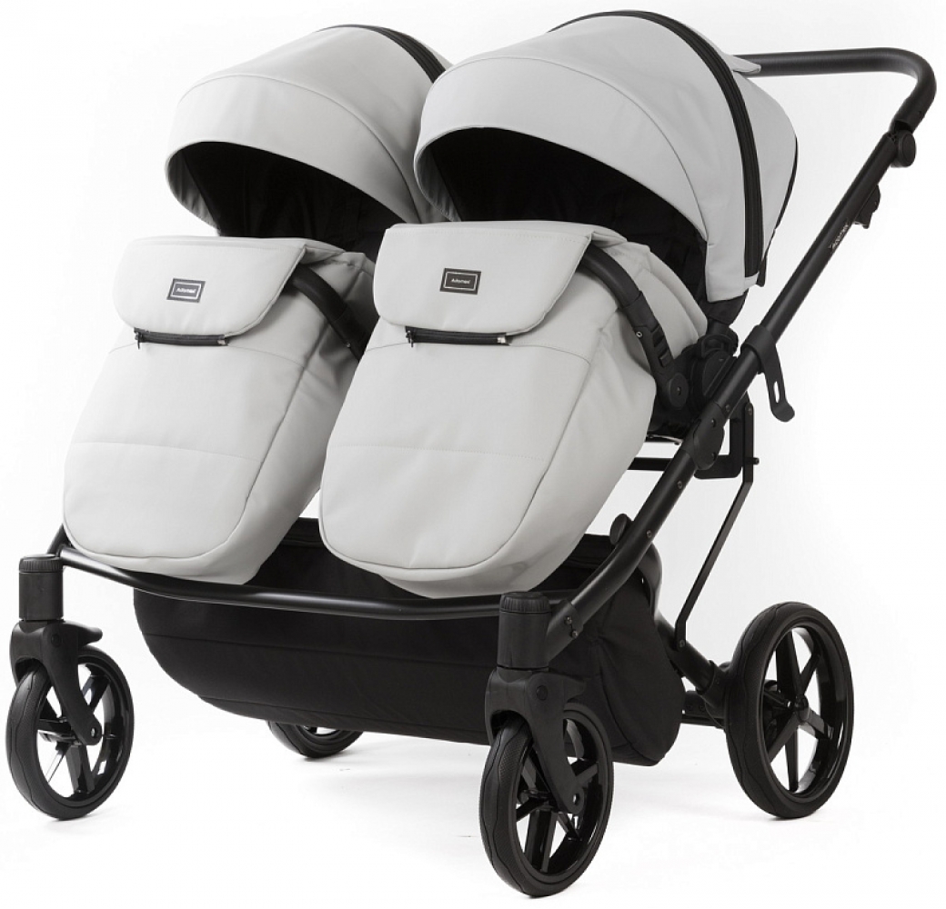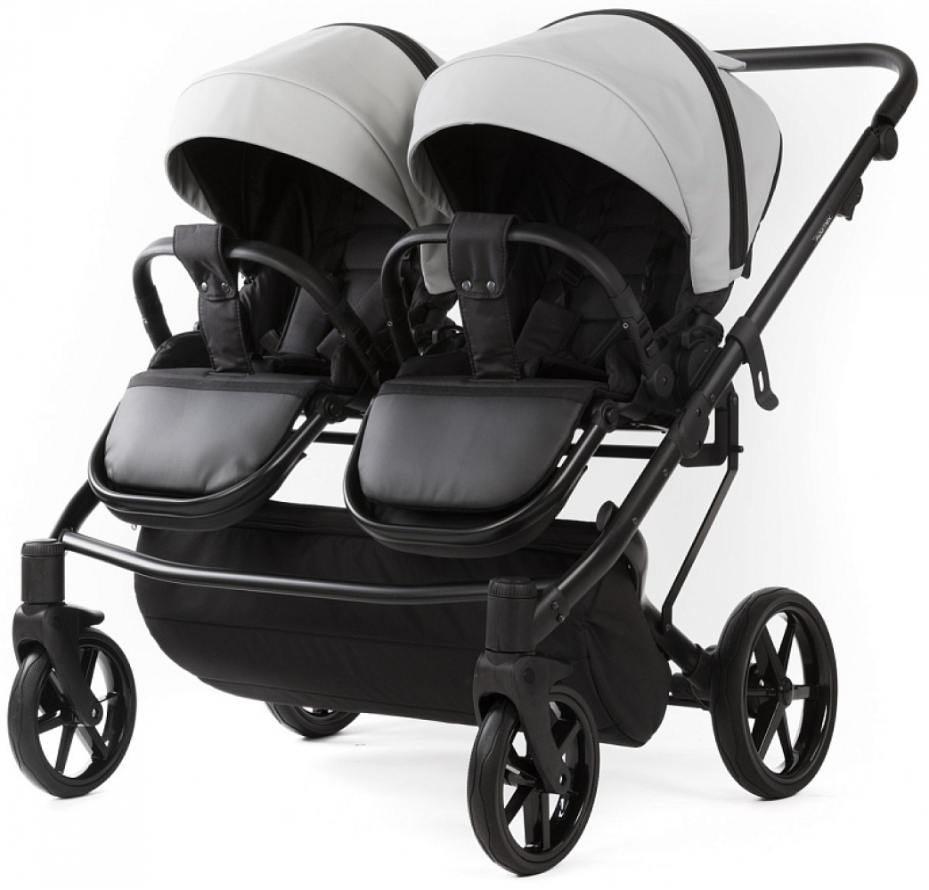Детская коляска для двойни Adamex Leo Duo Deluxe 3 в 1 DUO-SA3 (СВ.СЕРАЯ КОЖА)