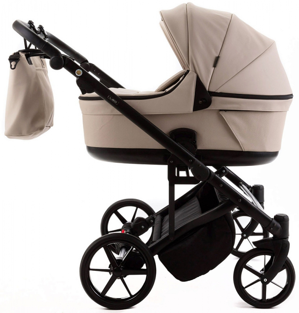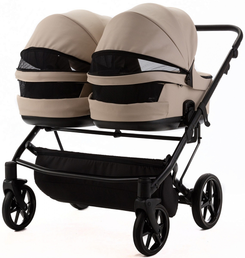 Детская коляска для двойни Adamex Leo Duo Deluxe 3 в 1 DUO-SA7 (СВ.БЕЖЕВАЯ КОЖА)