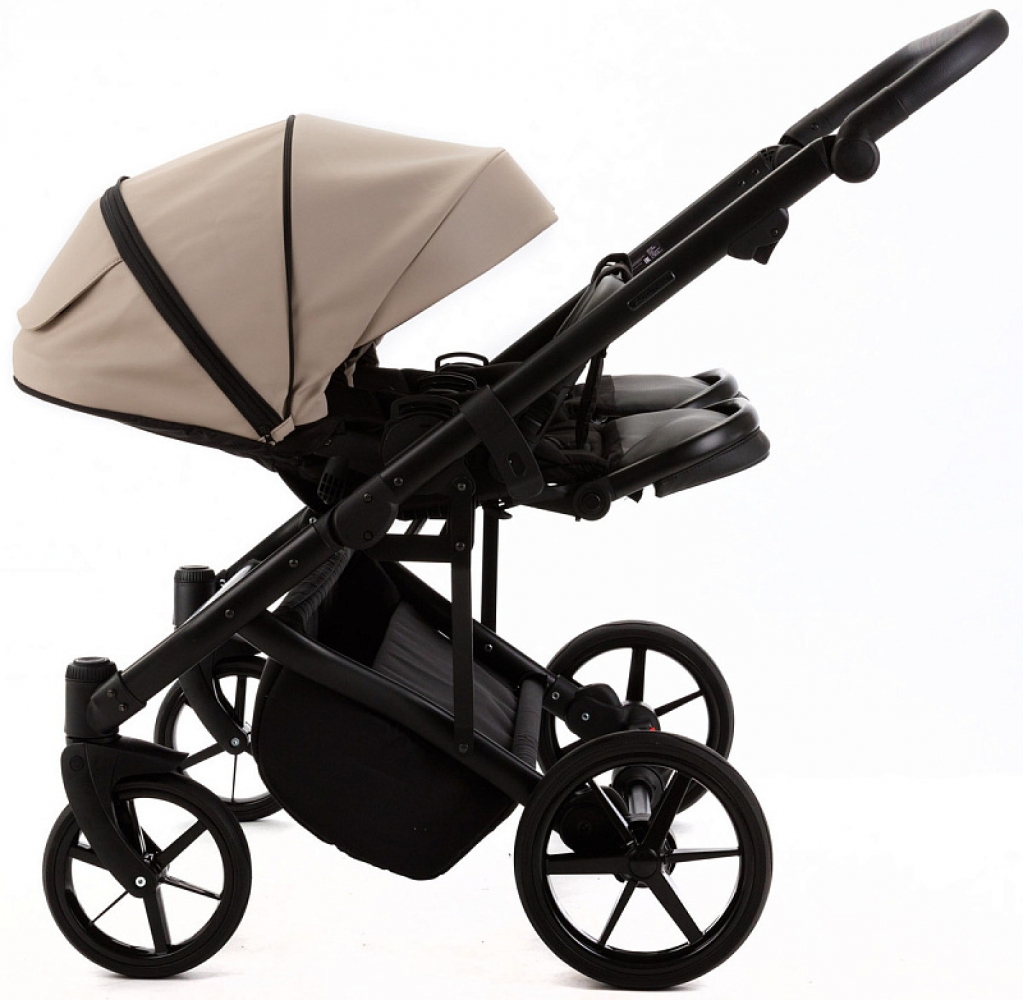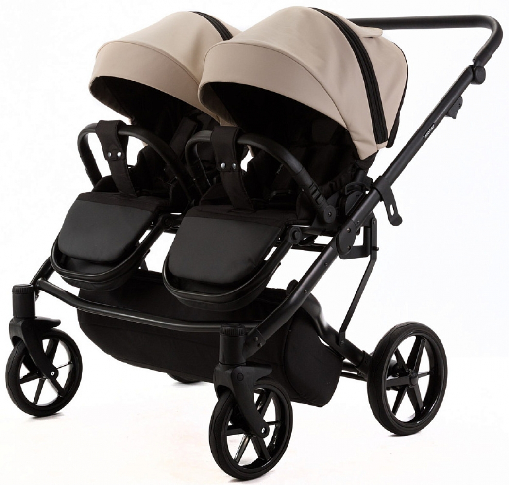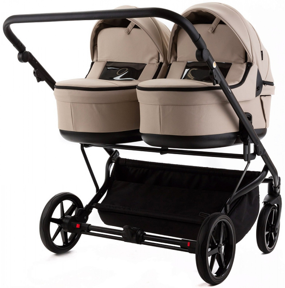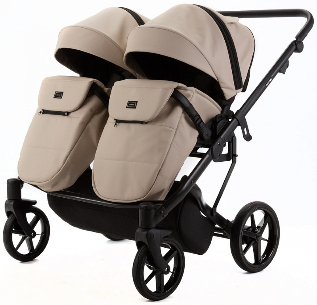 Детская коляска для двойни Adamex Leo Duo Deluxe 3 в 1 DUO-SA9 (Т.БЕЖЕВАЯ КОЖА)