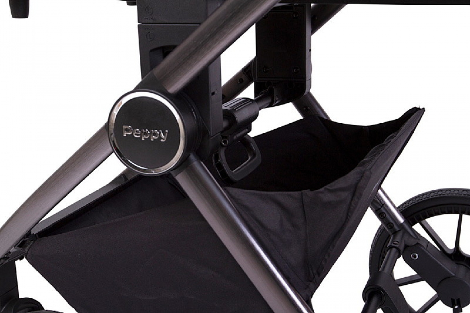 Peppy Monaco укомплектована вместительной корзиной, которая увеличивается в размерах и оснащена двумя дополнительными карманами для мелочей, где удобно спрятать москитную сетку.