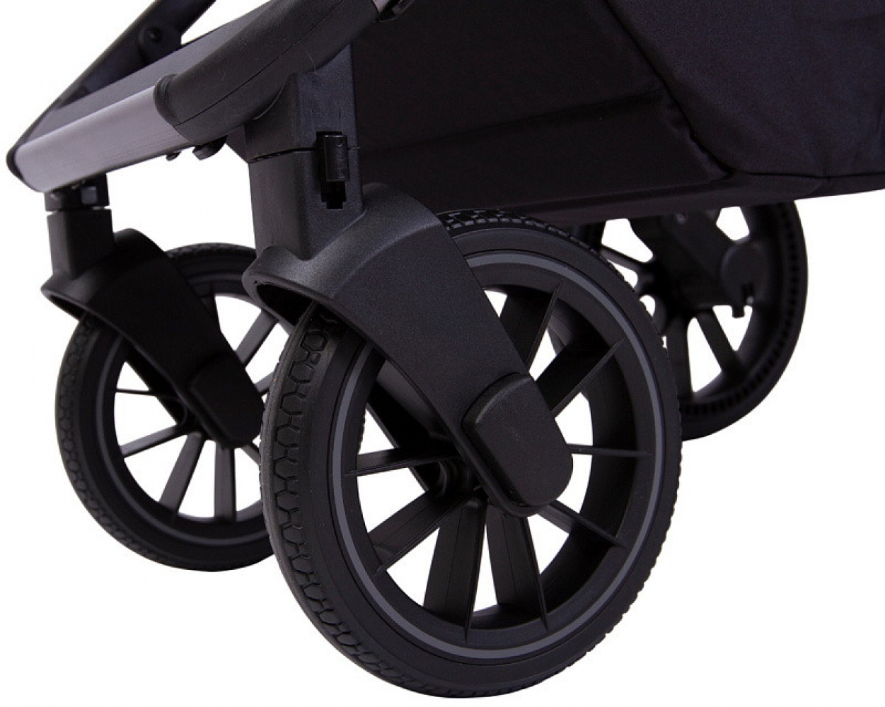Система амортизации передних колес снижает эффект тряски при езде по неровным дорогам, и позволяет мягко преодолевать бордюры. На задней оси стоят мягкие пружины, спрятаны в пластиковый каркас от попадания пыли и грязи.