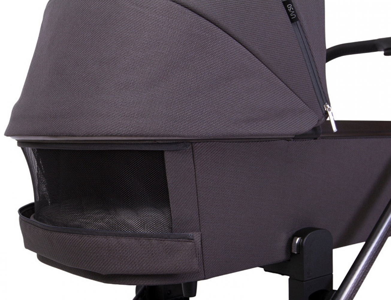Для лучшей циркуляции воздуха в жаркие летние дни в капоре люльки и у изголовья есть москитная сетка, спрятанная под молнией