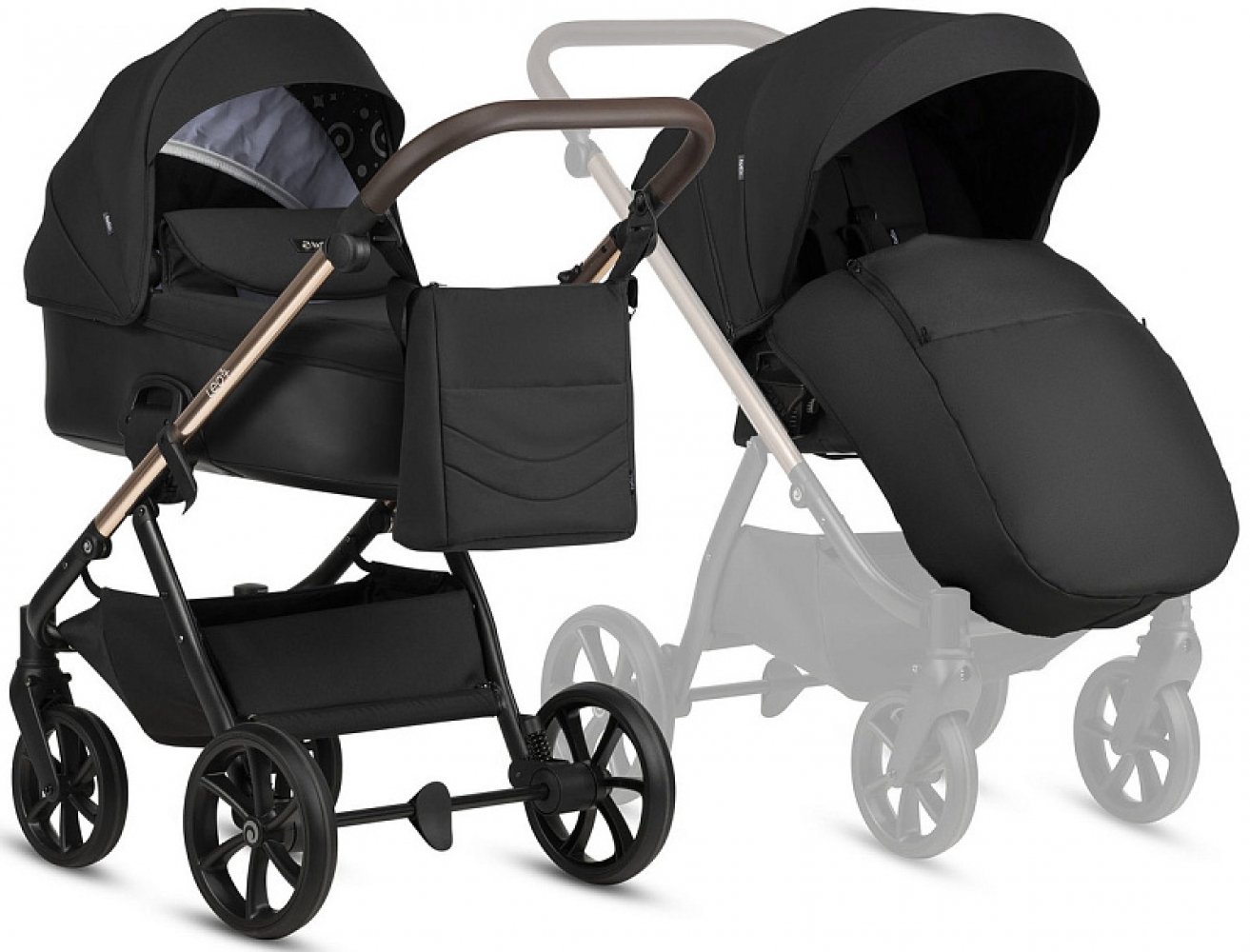Комплектация Люлька, Матрасик, Прогулочный блок, Накидка на ножки, Корзина для покупок, Сумка для мамы, Бампер, Адаптеры, Автолюлька
