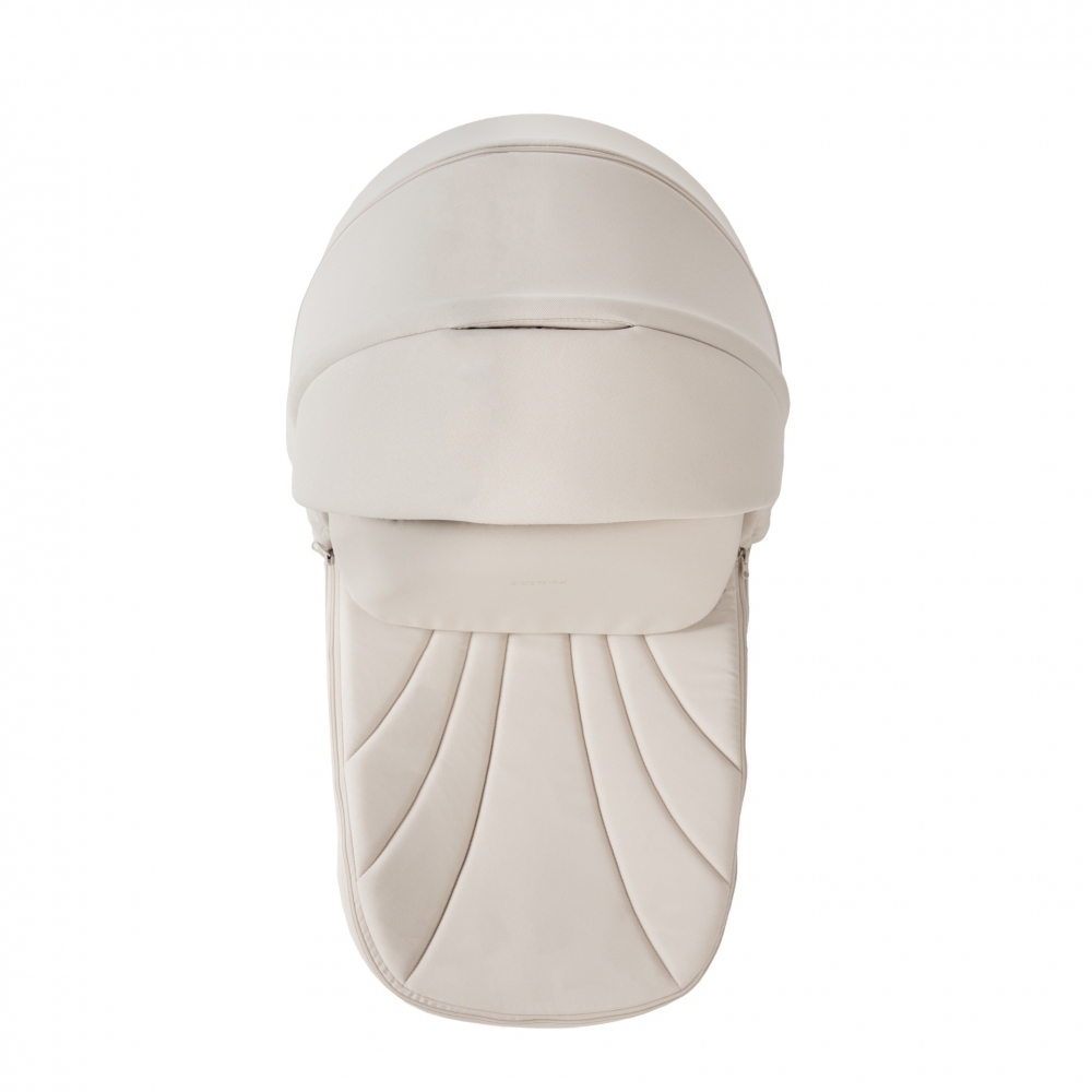 Два вентиляционных отверстия на молнии (спереди и сзади) плюс дополнительная вентиляционная панель в капюшоне создают управляемую циркуляцию воздуха. Летом расстегиваете все три зоны — люлька превращается в проветриваемое пространство. Осенью и весной регулируете по погоде. Зимой закрываете полностью — и люлька становится теплым коконом.