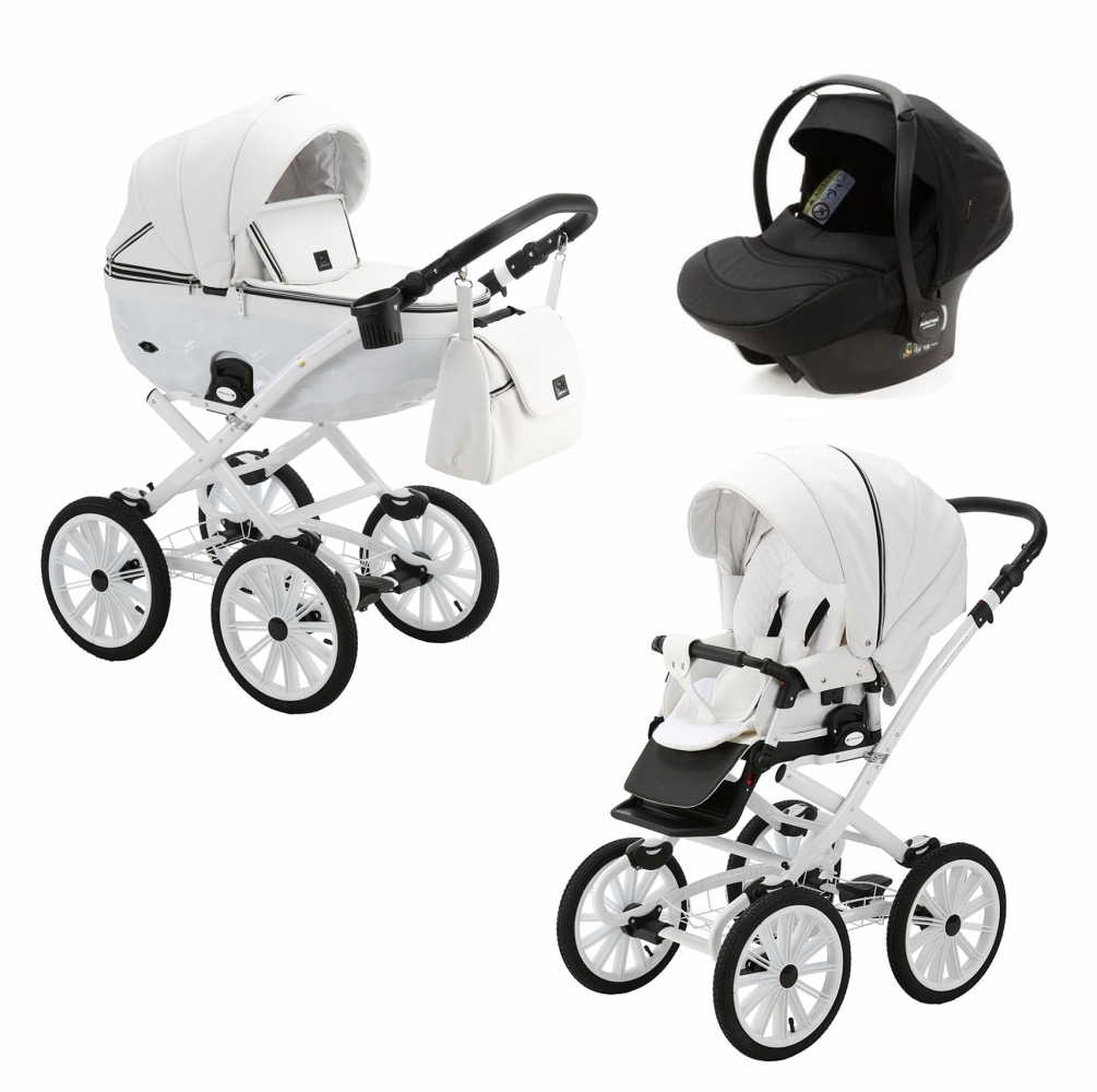 Детская коляска Adamex Chantal Retro Deluxe 3 в 1 C104A (БЕЛАЯ 100% КОЖА-ХРОМ.МОЛНИИ)