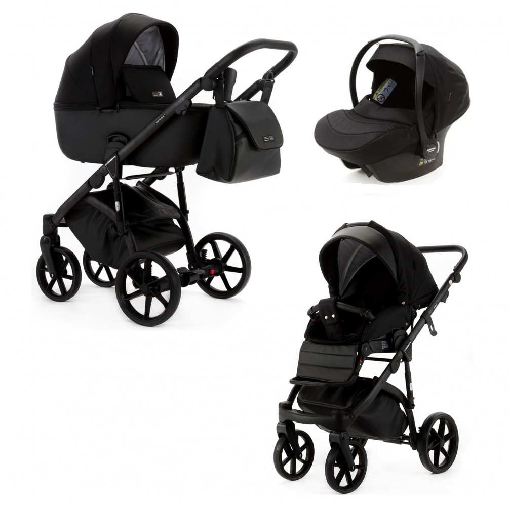 Детская коляска Adamex Nola Natura 3 в 1 N-11-CARBON (ЧЕРН + ЧЕРН. КОЖА)