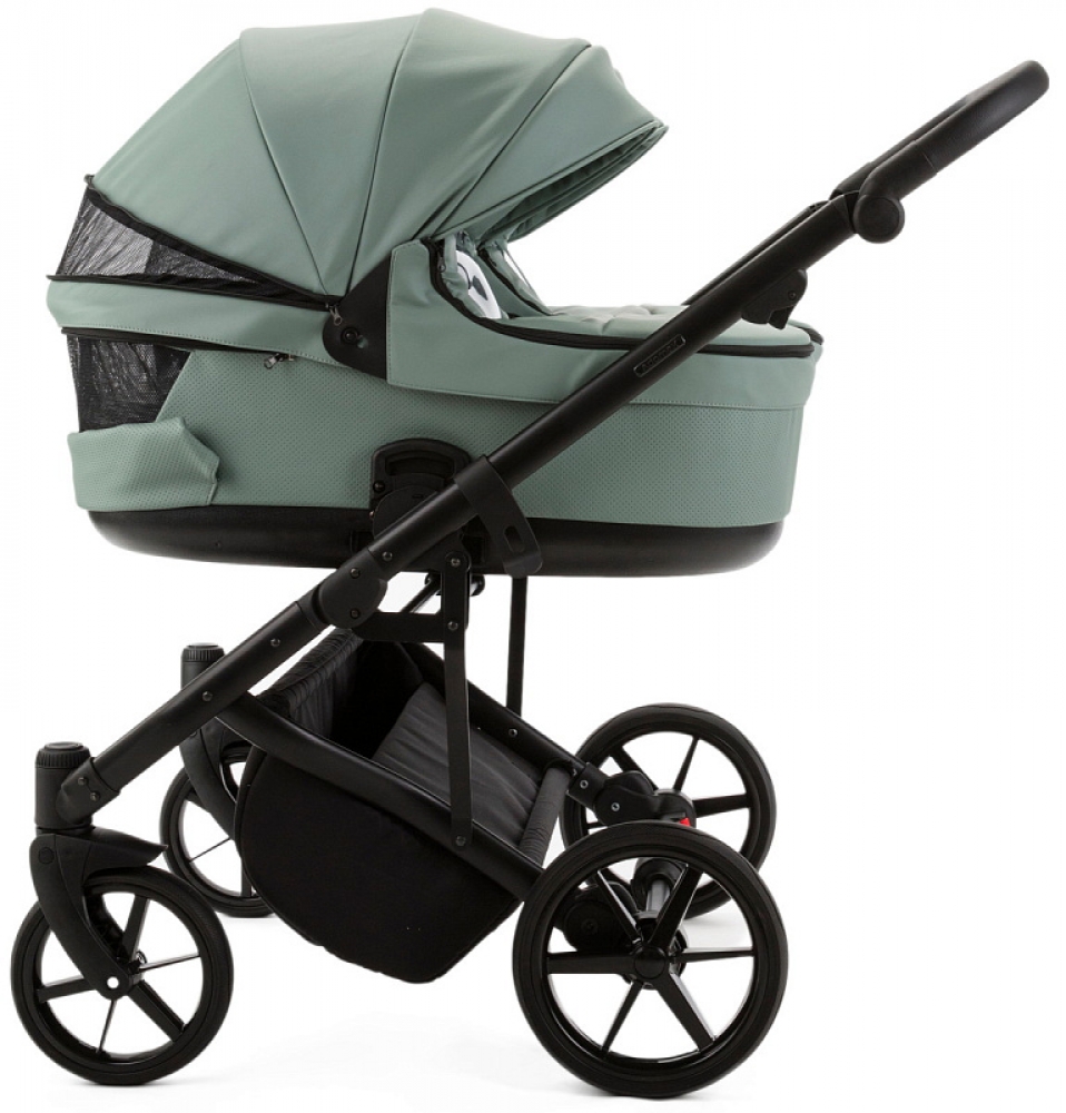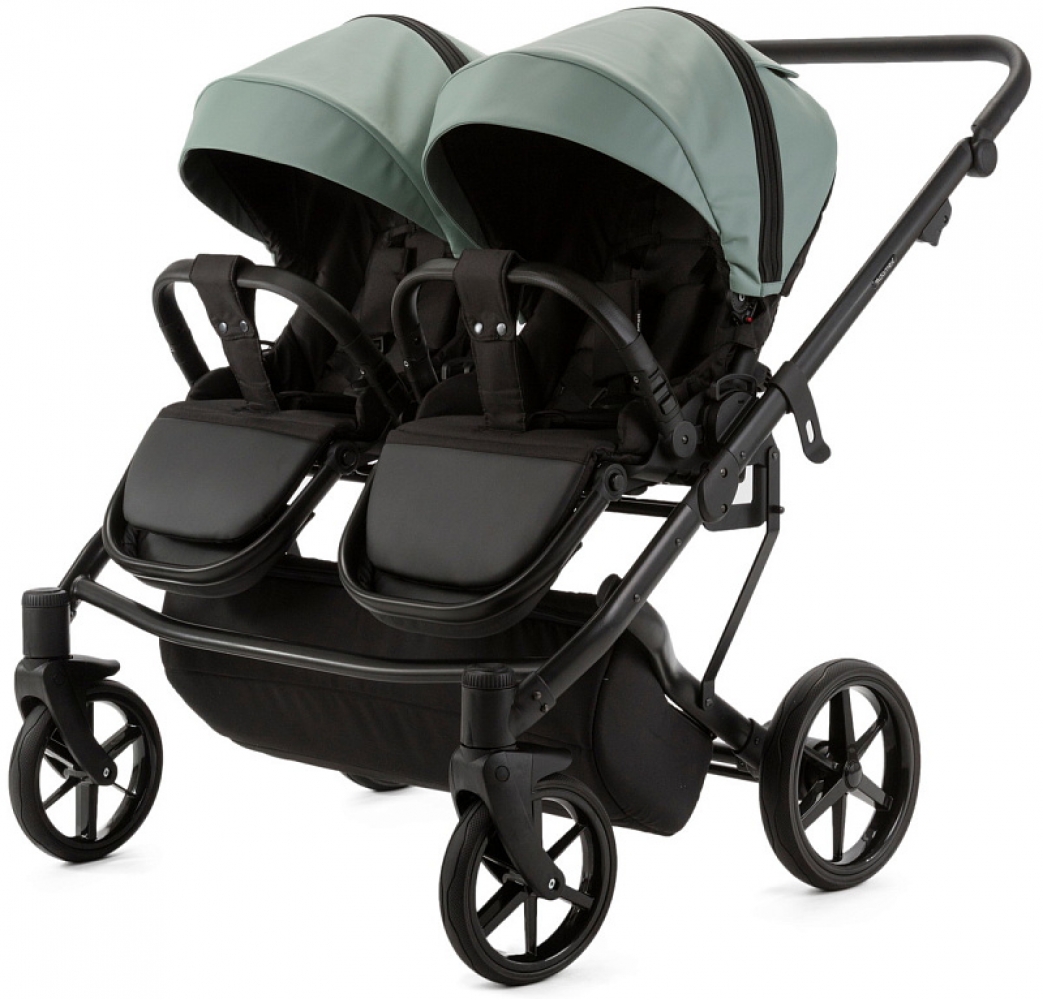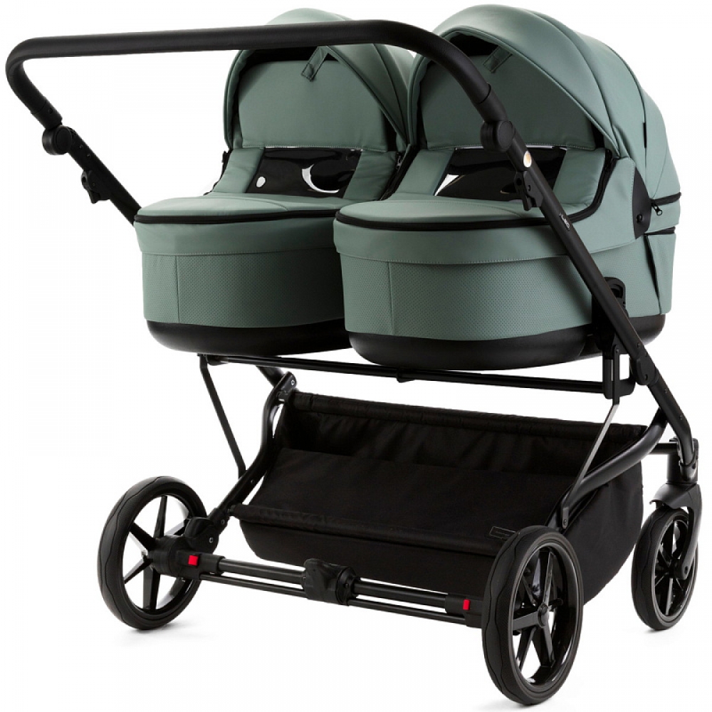 Детская коляска для двойни Adamex Leo Duo Deluxe 2 в 1 DUO-SA20 (СЕРО-ЗЕЛЁНАЯ КОЖА)