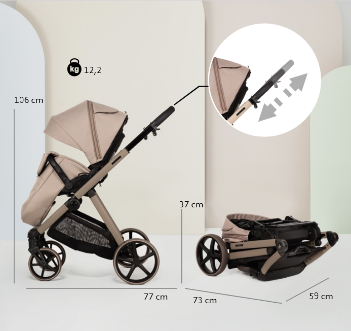 Плюс телескопическая ручка уменьшает размеры коляски в сложенном виде. Когда вы складываете Sigma, ручка автоматически втягивается, и коляска занимает меньше места в багажнике или прихожей.