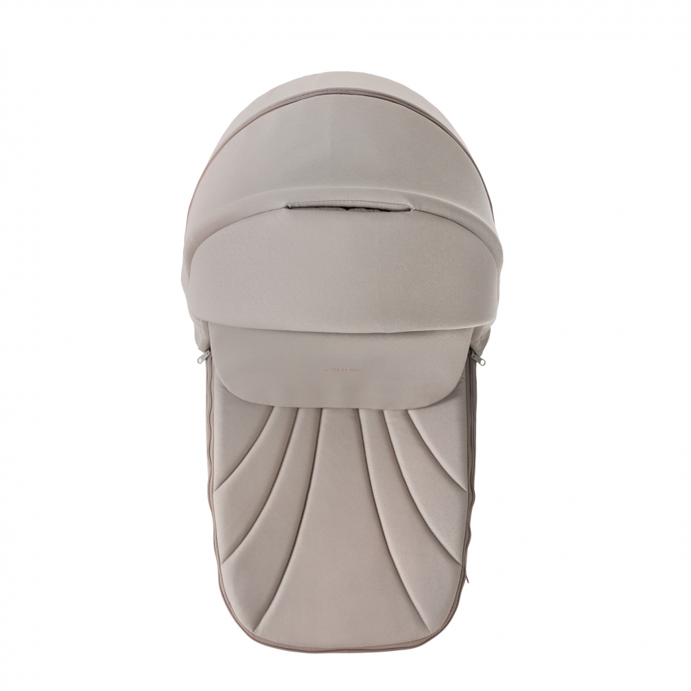 Два вентиляционных отверстия на молнии (спереди и сзади) плюс дополнительная вентиляционная панель в капюшоне создают управляемую циркуляцию воздуха. Летом расстегиваете все три зоны — люлька превращается в проветриваемое пространство. Осенью и весной регулируете по погоде. Зимой закрываете полностью — и люлька становится теплым коконом.