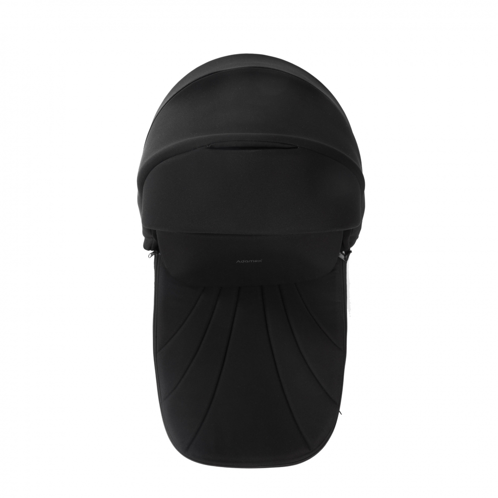 Два вентиляционных отверстия на молнии (спереди и сзади) плюс дополнительная вентиляционная панель в капюшоне создают управляемую циркуляцию воздуха. Летом расстегиваете все три зоны — люлька превращается в проветриваемое пространство. Осенью и весной регулируете по погоде. Зимой закрываете полностью — и люлька становится теплым коконом.