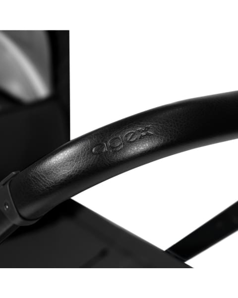 Удобная ручка Agex Play обтянута мягкой и приятной на ощупь экокожей, а по центру расположена кнопка для регулировки высоты. Нажав на неё, вы сможете настроить высоту ручки под свой рост. По бокам ручки находятся крючки для сумки, которая идёт в комплекте с коляской.