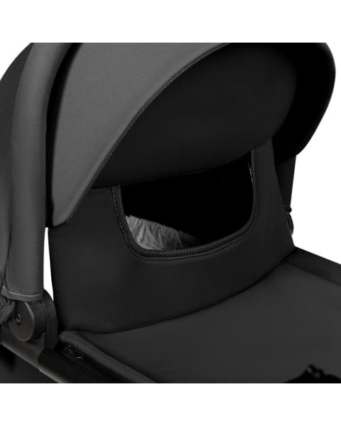 Особенность прогулочного блока коляски Agex Play — большой капюшон, который закрывает малыша до ног в сидячем положении. Ребёнок защищён от дождя и ветра. Чтобы полностью закрыть малыша, нужно максимально раскрыть капюшон. Для удобства наблюдения за малышом предусмотрено смотровое окно со шторкой на магнитах.