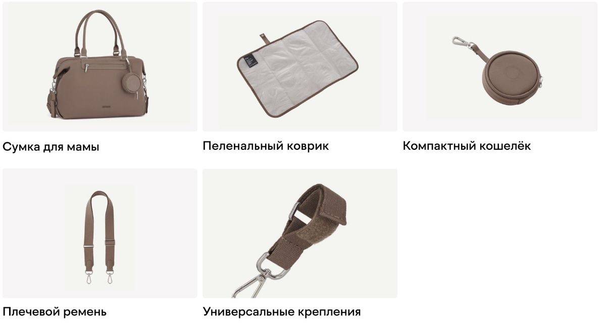 Эта сумка создана для того, чтобы всё необходимое было под рукой в течение дня: подгузники, салфетки, бутылочки и даже ноутбук. Просторные мягкие карманы помогают удобно разместить каждую вещь. В комплекте — мягкий пеленальный коврик и компактный кошелёк, которые всегда хочется держать при себе.