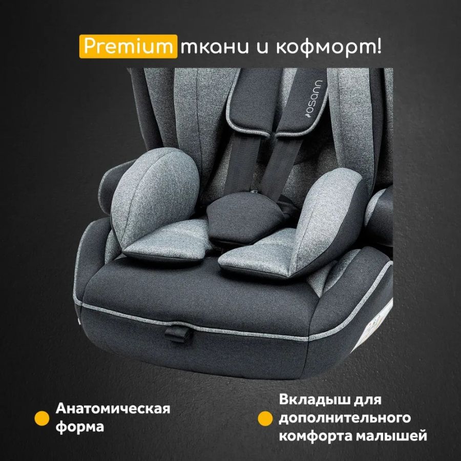 - Группа 2/3 (для детей от 15 до 36 кг): установка по ходу хода движения при помощи штатного ремня автомобиля, пристёгивание ребенка штатным ремнем автомобиля