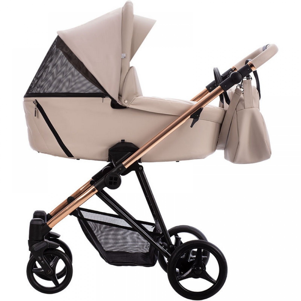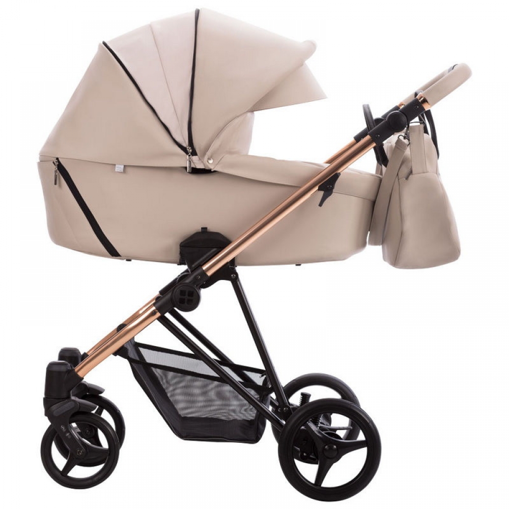 Детская коляска Bebetto Yoddi Premium Class 2 в 1 01 бежевая кожа рама бронза