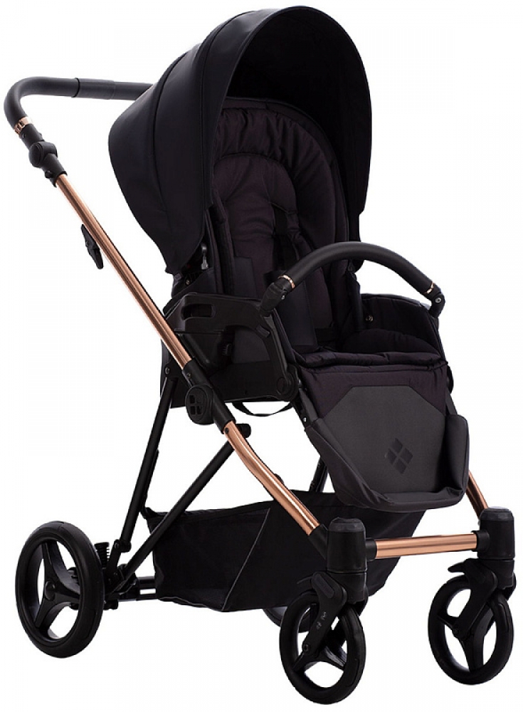 Детская коляска Bebetto Yoddi Premium Class 2 в 1 02 черная кожа рама бронза