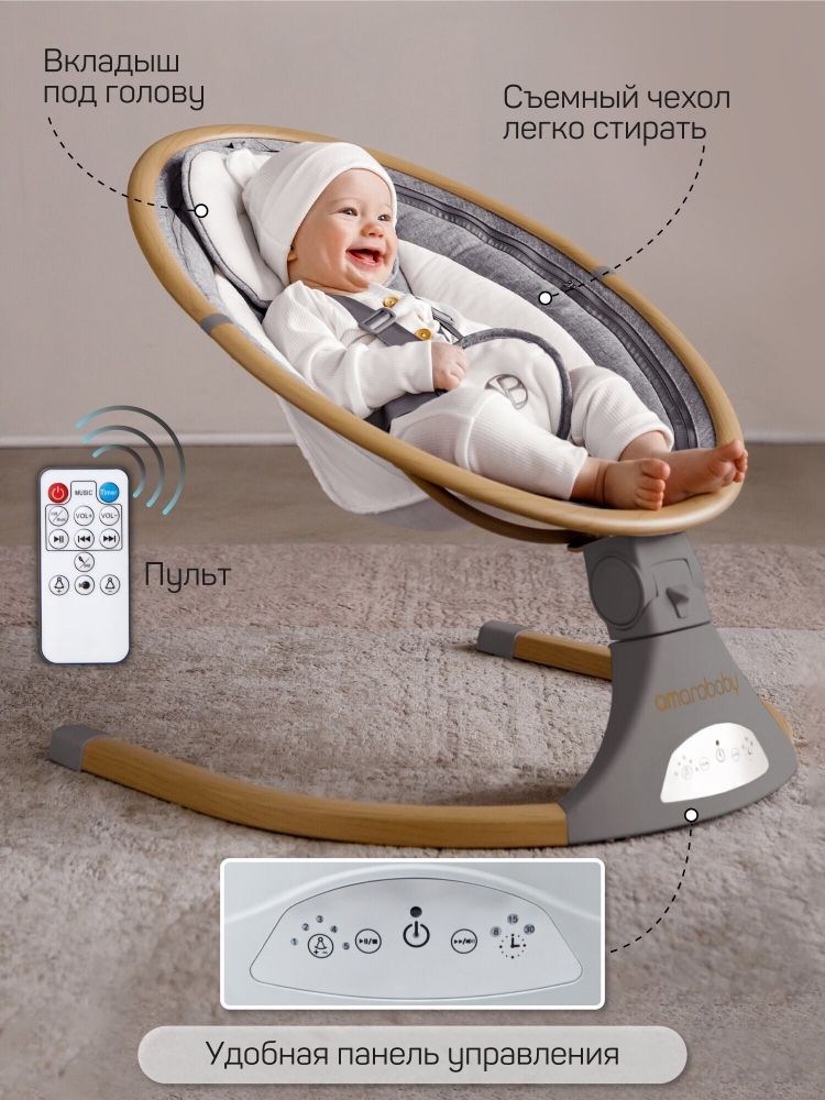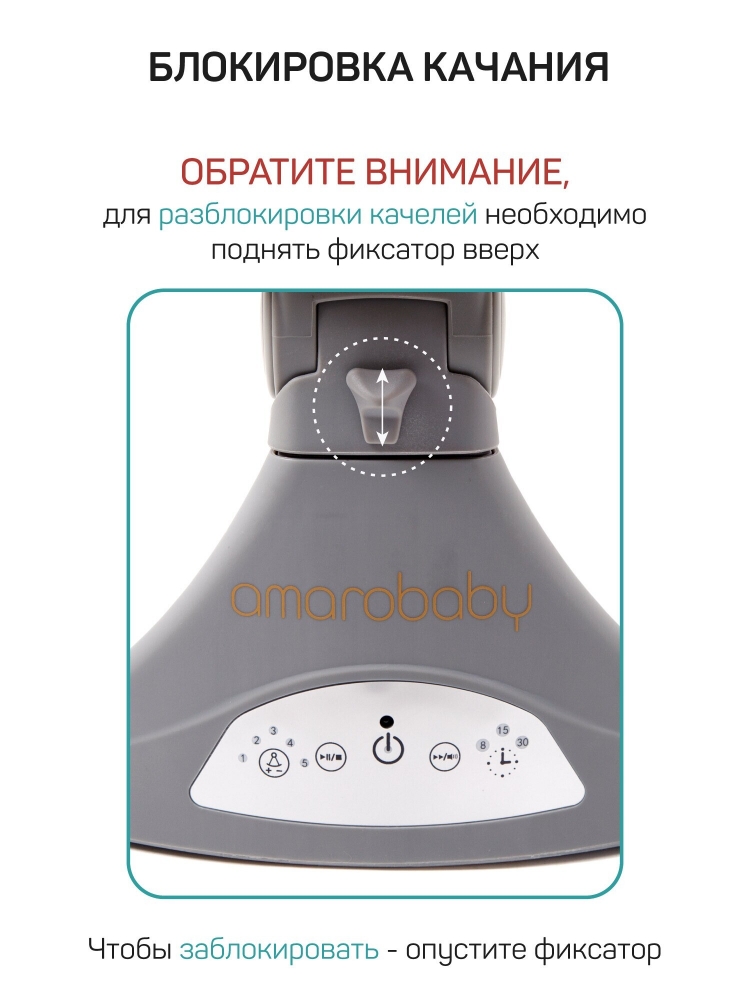 Электронные качели AmaroBaby ERGO SWING станут полезным помощником в жизни каждой мамы. Отдохните, пока электрокачели Amarobaby убаюкивают малыша. Выберете любимую мелодию из предложенных или включите детские песенки с телефона с помощью воспроизведения музыки через функцию BLUEТOOTH. Ремни безопасности надежно удержат ребёнка в электрокачелях, а пятискоростной режим укачивания подстроится под личные особенности сна каждого младенца. Установите таймер качания на 8, 15, 30 минут это поможет вам запланировать режим работы качелей.
