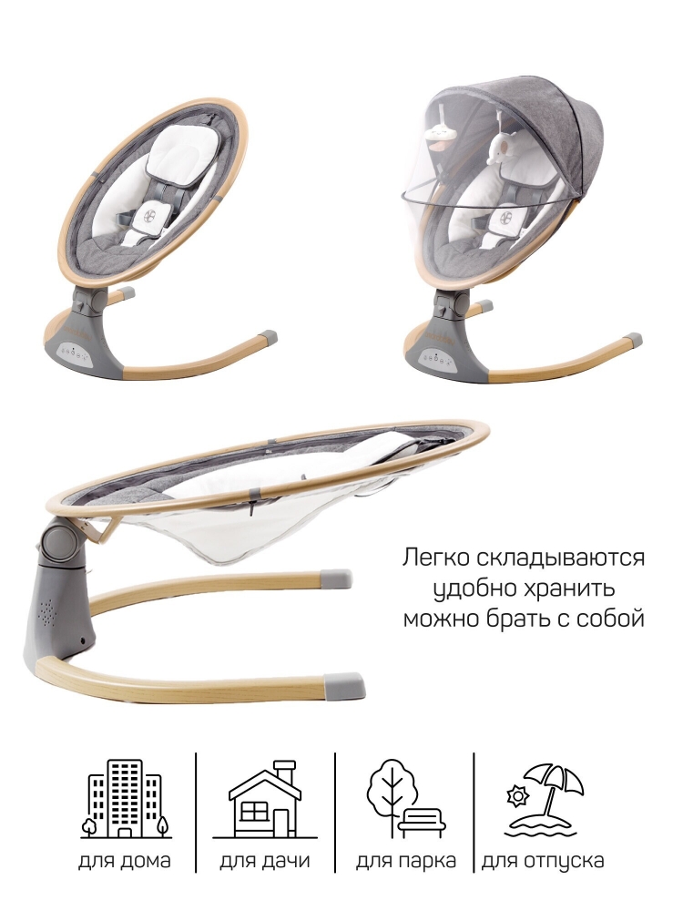Электронные качели детские AMAROBABY ERGO SWING, серый
