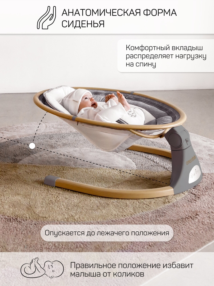 Электронные качели детские AMAROBABY ERGO SWING, бежевый
