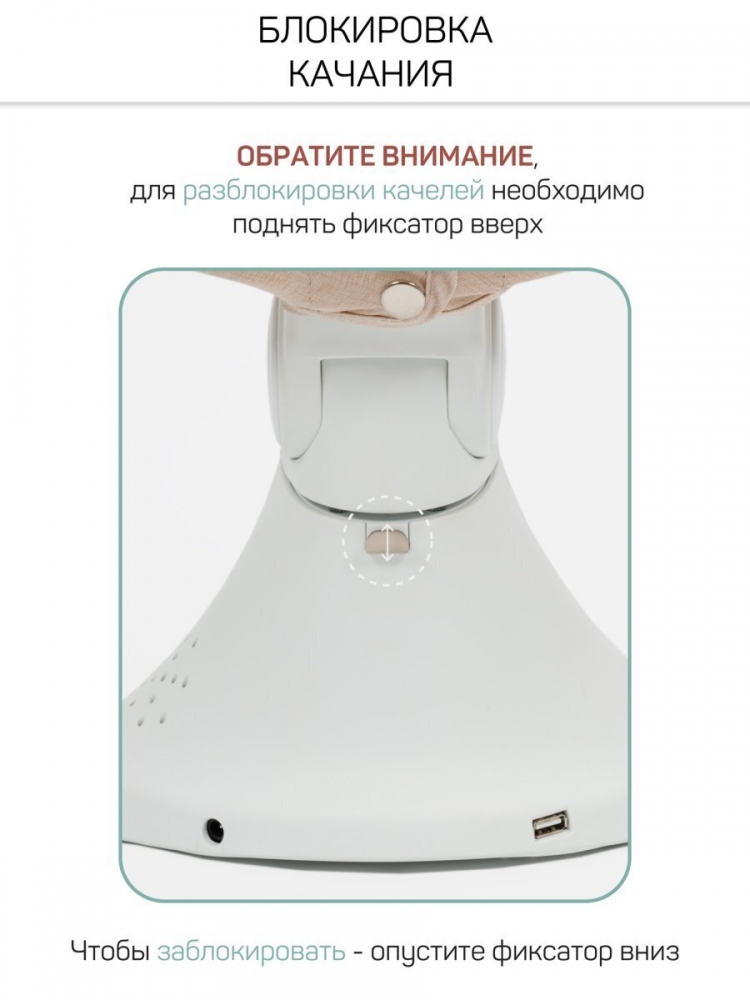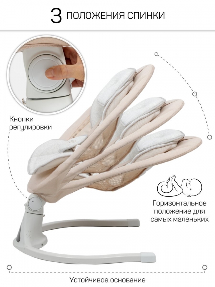 Комфортные ремни безопасности с гибкой регулировкой, надежно удерживают ребенка в качелях, обеспечивая ему повышенную безопасность. С помощью пульта ДУ, который идет в комплекте, вы легко сможете управлять функциями электрокачели на расстоянии, продолжая заниматься домашними делами. 5 скоростей укачивания позволяет настроить интенсивность качания в соответствии с вашими предпочтениями.