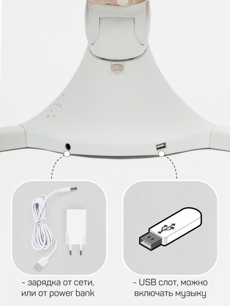 Электрокачели для новорожденных оснащены очаровательными мягкими игрушками с погремушками, это стимулирует развитие мелкой моторики рук и обеспечивает дополнительное развлечение для малыша. Так же, модель оснащена не только возможностью питания от сети при помощи встроенного кабеля, но и от элементов питания АА (батареек/аккумуляторов, в комплект не входят). Вы можете использовать ее не только дома, но и в поездках или на даче.