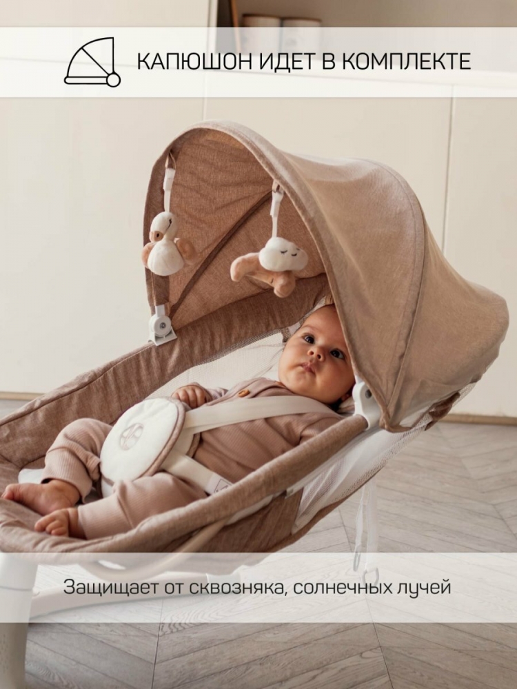 Пятискоростной режим укачивания позволяет настроить интенсивность качания в соответствии с предпочтениями вашего младенца. Чтобы обеспечить максимальный комфорт, электрокачели для новорожденных имеют регулируемый угол наклона сиденья. Это позволяет вашему малышу отдохнуть и расслабиться в положении, которое ему нравится. Электрокачели для новорожденных с пультом оснащены очаровательными мягкими игрушками, которые закреплены на капюшоне в непосредственной близости от ребенка. Это стимулирует развитие мелкой моторики рук и обеспечивает дополнительное развлечение для малыша.
