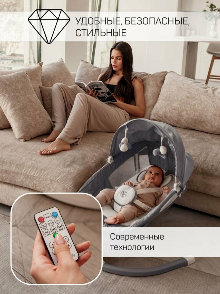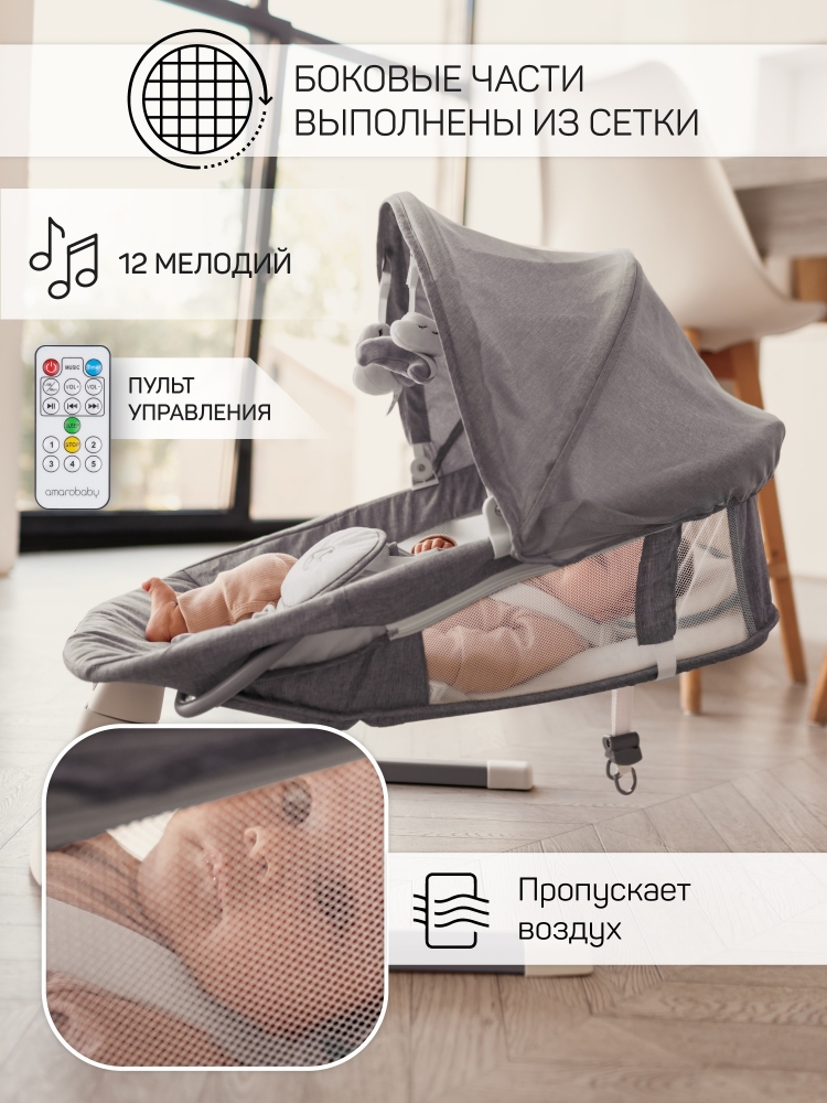 Электронные качели AmaroBaby LUCKY SWING - это надежное и удобное решение для мам и их малышей. Они обеспечивают безопасность, комфорт и развлечение, позволяя вам наслаждаться временем для себя, пока ваш малыш отдыхает и играет в этих замечательных качелях. Идеальный подарок для вашего малыша или для близкого друга, который только что стал родителем.