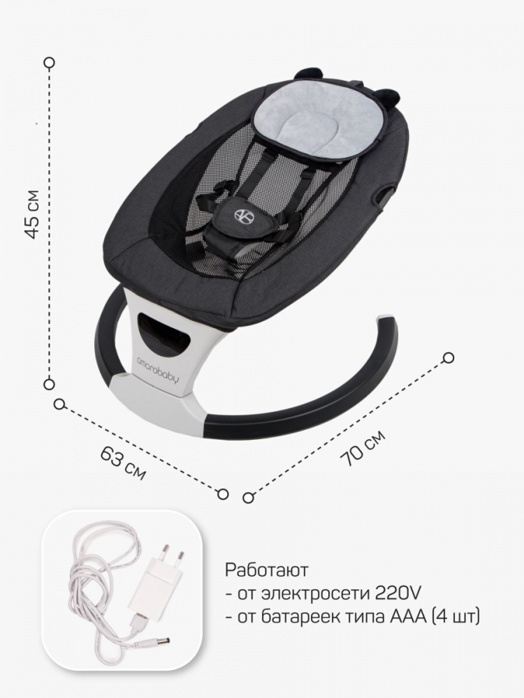 Электронные качели для малышей Amarobaby Teddy swing - это идеальное решение для заботливых мам. Они предлагают широкий спектр функций, чтобы обеспечить комфорт и развлечение для вашего малыша. Приятные мелодии из 12 предложенных вариантов, создадут вашему малышу спокойную и уютную атмосферу. А с помощью функции Bluetooth вы сможете поставить любую детскую песенку, которая по душе вашему малышу. Так же вы можете воспользоваться в usb носителем, заранее записав на него любимые сказки и мелодии в формате mp3. Ремни безопасности надежно удерживают ребенка в качелях, обеспечивая ему безопасность и комфорт. С помощью пульта ДУ, который идет в комплекте, вы легко сможете управлять функциями электрокачели. Пятискоростной режим укачивания позволяет настроить интенсивность качания в соответствии с предпочтениями вашего младенца. Электрокачели для новорожденных оснащены очаровательными мягкими игрушками, которые закреплены на капюшоне в непосредственной близости от ребенка. Это стимулирует развитие мелкой моторики рук и обеспечивает дополнительное развлечение для малыша. Чтобы обеспечить питание электрокачелей, вы можете использовать адаптер питания, который входит в комплект, или установить 4 батарейки типа ААА (в комплект не входят). Таким образом, вы можете использовать качели даже в отсутствие электричества или в поездках. Электрокачели Amarobaby имеют функцию автоматического отключения по таймеру через 8, 15 или 30 мин. Модель обладает необычным, стильным дизайном, который впишется в любой интерьер. Возможность использовать качели без матрасика в жаркую погоду позволит ребенку ощутить дополнительный комфорт во время сна, сетчатая спинка предотвратит перегревание. Так же матрасик оснащен двумя вариантами покрытия с разных сторон: лен и плюшевая ткань, чтобы сделать использование качели еще более комфортным для вас и вашего ребенка. Вы сможете менять ткань в зависимости от ваших предпочтений.