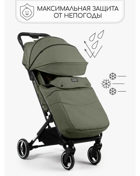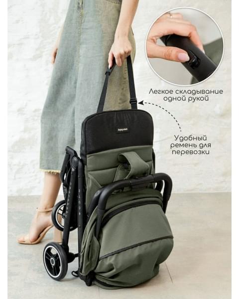 Для удобства переноски есть специальный ремешок, который позволяет вам легко взять коляску с собой. В комплекте с коляской идет теплый чехол на ножки, москитная сетка и дождевик.