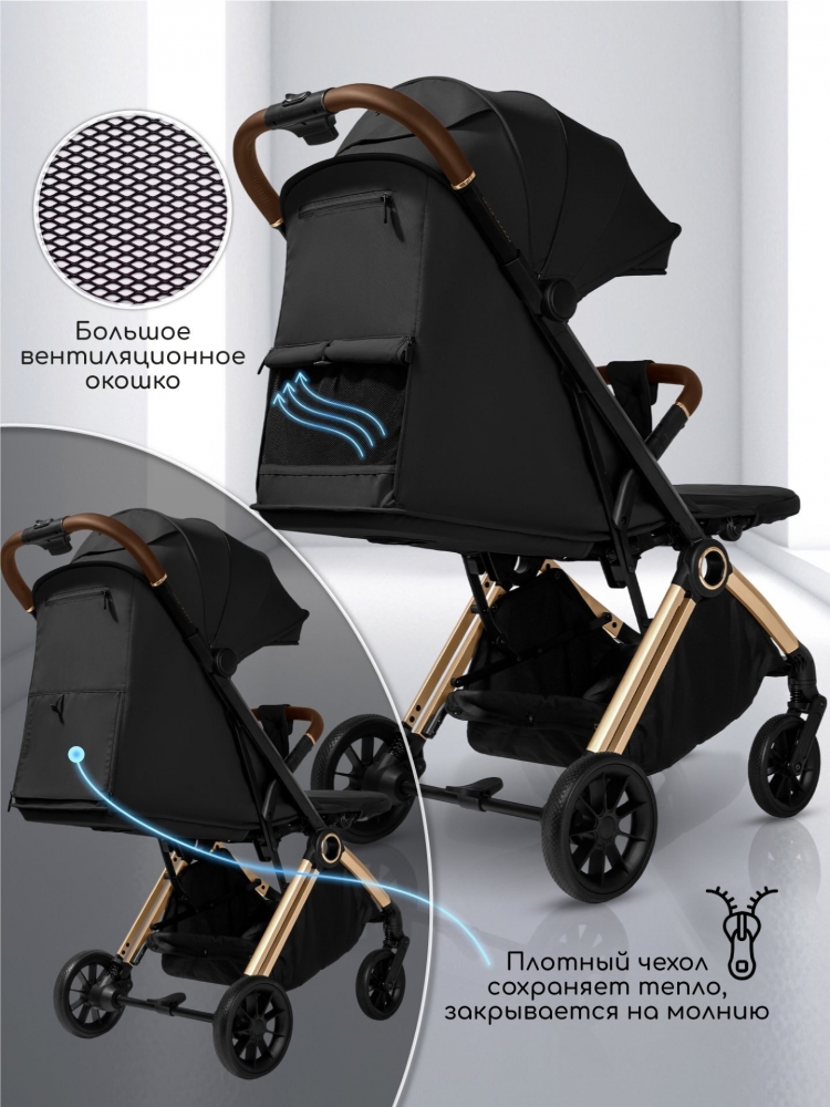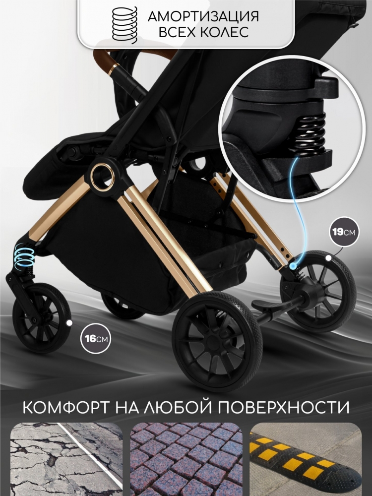 Прогулочная коляска Amarobaby Handy, черный/золотой