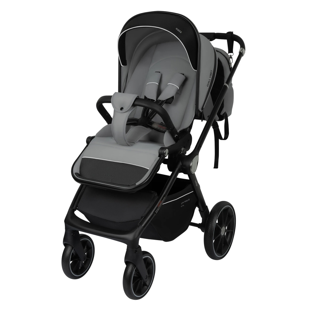 Колеса из термопластичной резины не прокалываются и не сдуваются. Они прекрасно ведут себя не только на ровной дороге, но и по бездорожью. Передние поворотные колеса дарят легкость в управлении коляской, а регулируемая по высоте ручка позволит настроить коляску под свой рост. Вместительная корзина для вещей и покупок имеет удобный доступ и размещена высоко от дороги. Большая комплектация позволит сразу после покупки коляски отправиться на прогулку не зависимо от погоды за окном.