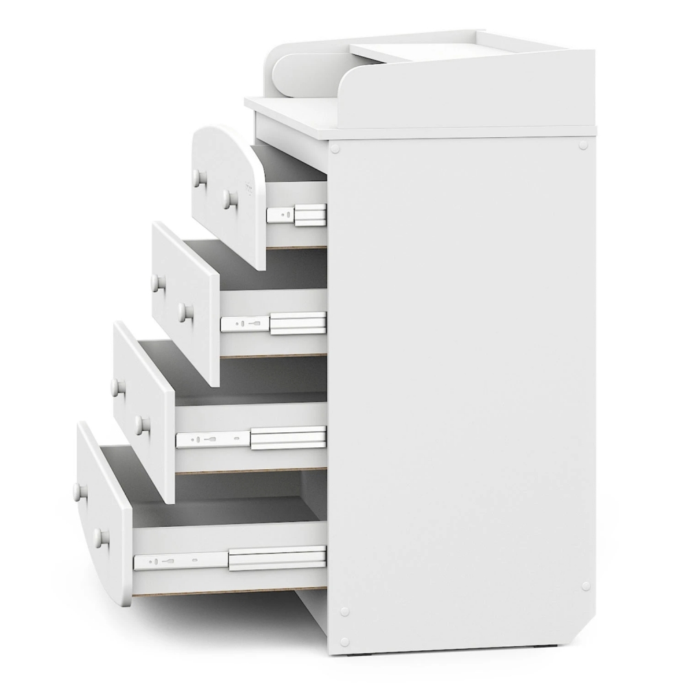 Этот комод функционален и эстетически привлекателен. Благодаря откидному столику для пеленания, он идеально подходит для ухода за малышом, а стильный дизайн фасадов с удобными функциональными ручками круглой формы делает его отличным дополнением к любому интерьеру. Вместительные ящики на бесшумных шариковых направляющих обеспечивают легкий доступ к вещам малыша, не беспокоя его сон, а четыре возможных цветовых решения комодов позволят вам сделать идеальный выбор для детской комнаты.