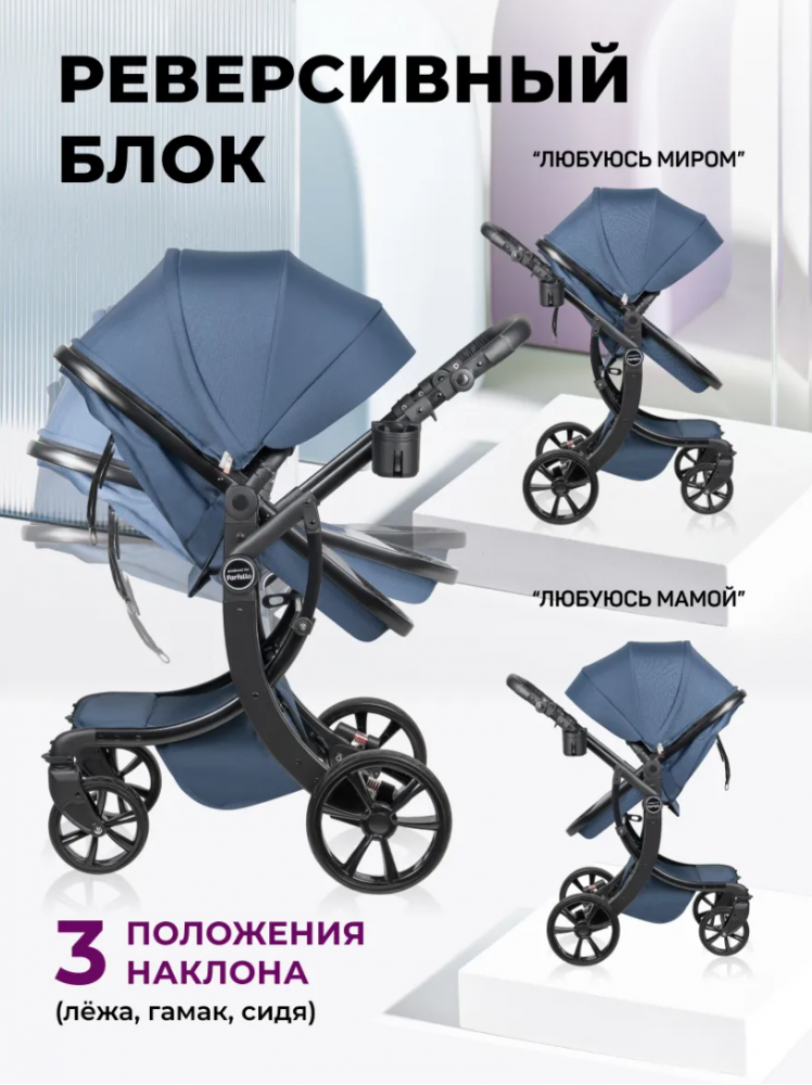 Aimile Original New Black выполнена на стильной черной раме, в Европейской ткани в иссиня-чёрном цвете "Лунная ночь". Коляска Aimile Original - это самая популярная коляска трансформер: лёгкая, стильная, манёвренная! Главные достоинства модели: - реверсивный блок - возможность устанавливать по ходу движения или лицом к родителям; - Европейская ткань плотного плетения 600D с водоотталкивающей пропиткой; - утепленный флисовый конверт - теплая защита малыша в прохладные дни. Длина конверта позволяет его использовать с рождения до 1 года. Конверт состоит из трех слоев: 1. Наружная ткань - плотная Европейская ткань, защищающая от ветра и мокрого снега; 2. В качестве наполнителя используется 100% полиэфир 3. Внутренний слой выполнен из приятной флисовой ткани. Круговая молния облегчает размещение ребенка в конверте, с внутренней стороны замок прошит дополнительно защитной тесьмой, для удобства и безопасности. Благодаря полностью съемной верхней части, аксессуар можно использовать в качестве теплого матрасика в коляску. - спальный блок выполнен из двух слоев ткани; - всесезонная коляска подходит для круглогодичного использования; - легкость трансформации; - удобная компактная конструкция: не нужно искать дома дополнительное место для хранения отдельного прогулочного блока; - широкий отворот для защиты от ветра. При необходимости его можно развернуть на всю длину и закрепить за капюшон. Холодный ветер и снег не побеспокоят малыша во время прогулки; - увеличенный полог для ног; - колеса PU: мягкая амортизация всех 4-х колес обеспечивает безупречную маневренность и комфорт; - легкая алюминиваемая рама; - передние поворотные колеса с возможностью фиксации, обеспечивают легкую маневренность; - все колеса съемные, после прогулки вы без труда сможете снять, помыть, для дальнейшего хранения коляски дома; - бампер и родительская ручка выполнены из экокожи, с отстрочкой увеличивающей срок эксплуатации и препятствующей скольжению рук; - родительская ручка регулируется по высоте, от 87 см до 113 см. Коляска комплектуется удобным подстаканником, большим многофункциональным флисовым конвертом для ребенка, дождевиком и сумкой органайзером. Дополнительно к коляске можно приобрести автолюльку модели Farfello KS-2150a, выполненную из аналогичной Европейской ткани в цвет коляски. Возраст: для детей с рождения до 3 лет. Параметры: Габариты коляски,см: 94*61*107 см Размер в разобранном виде (рама): 92*61*30 см Колеса PU. Размер колес: задние 27 см, передние с фиксацией 19,5 см. Ширина колесной базы 61 см. Размер сиденья 21х34 см. Размер спинки 44х34 см. Максимальная нагрузка до 15 кг.
