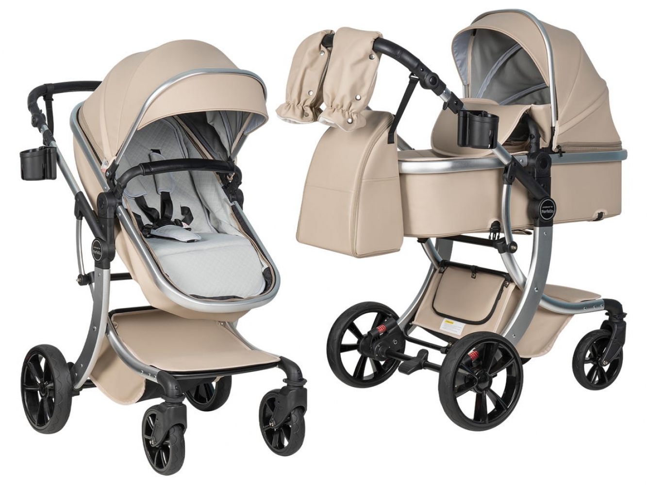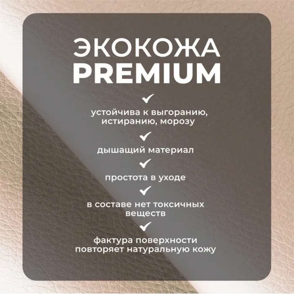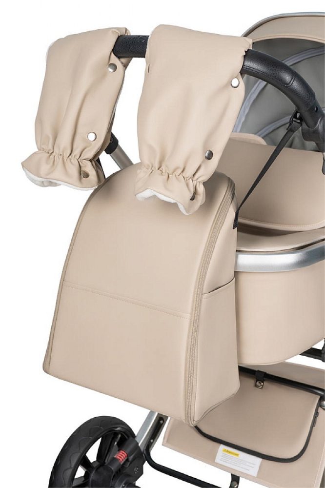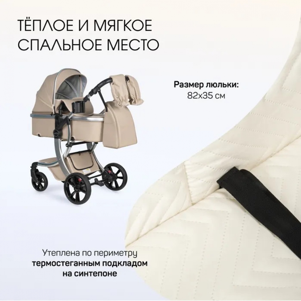 Коляска выполнена из экокожи Premium-класса с водоотталкивающей пропиткой, которая не только придает изделию изысканный вид, но и обеспечивает долговечность и простоту в уходе.