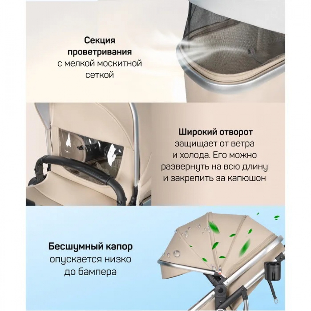 •    Круглогодичное использование: коляска адаптирована для любых погодных условий, делая прогулки приятными в любое время года.