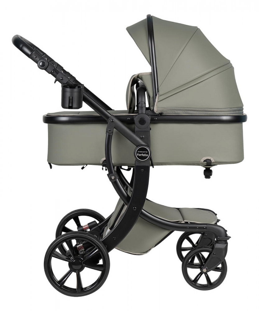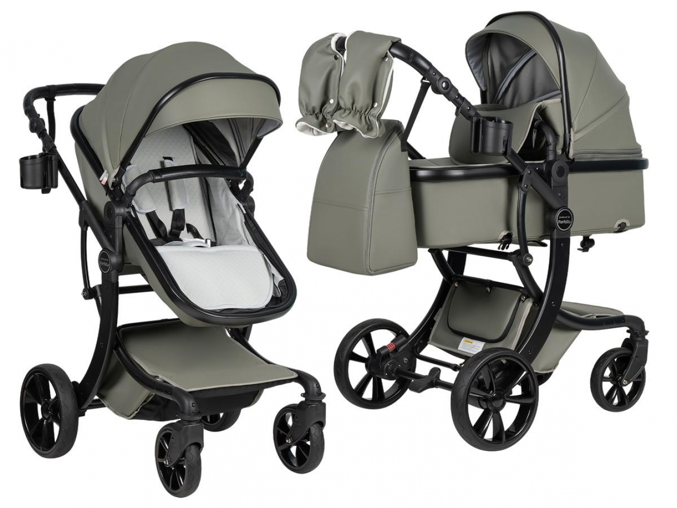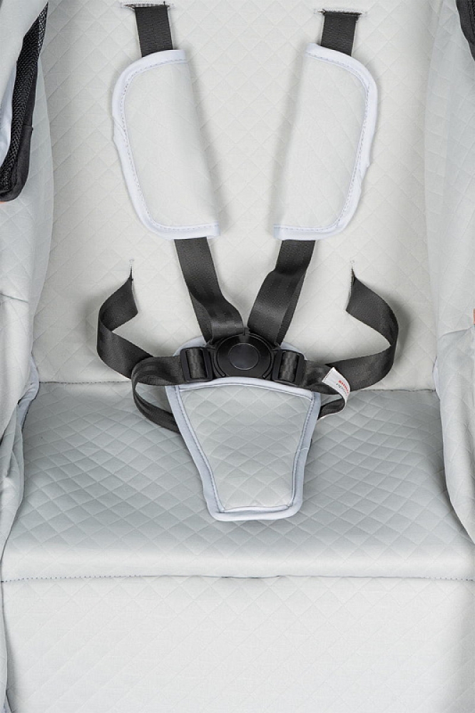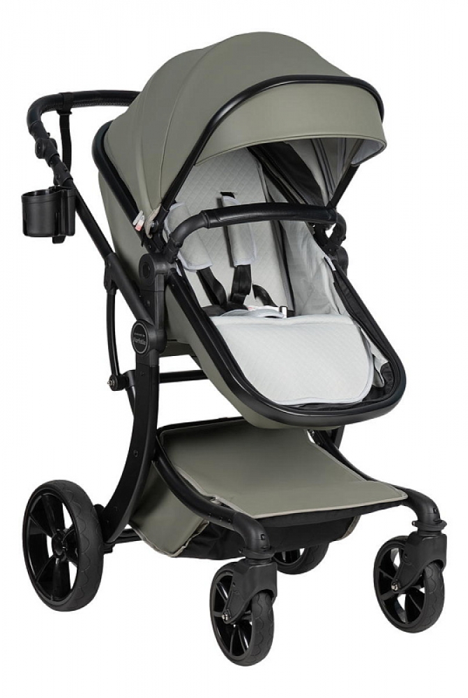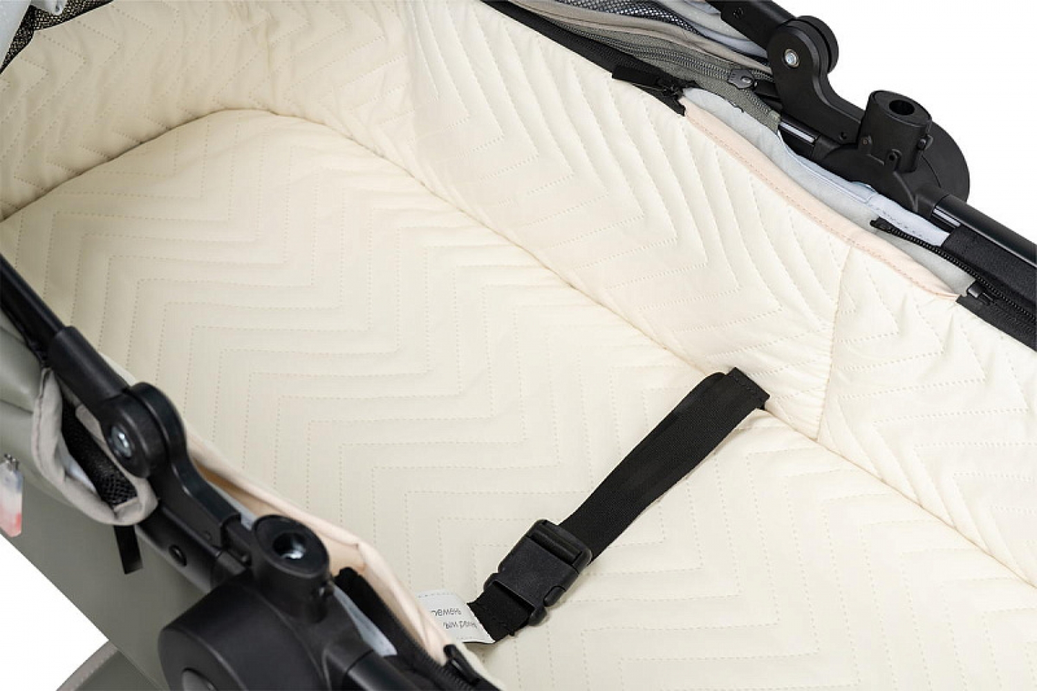 Коляска выполнена из экокожи Premium-класса с водоотталкивающей пропиткой, которая не только придает изделию изысканный вид, но и обеспечивает долговечность и простоту в уходе.