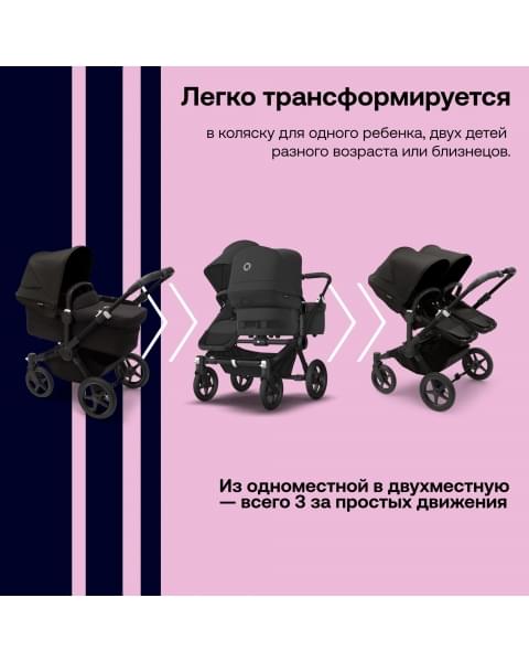 Коляска 2 в 1 Bugaboo Donkey 5 Twin Midnight Black шасси Black