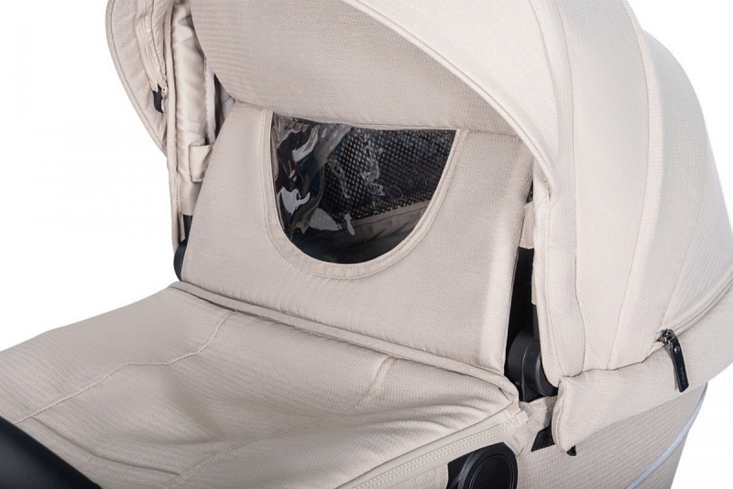 Спальный модуль (с рождения до 7 мес): утеплен по периметру термостеганным подкладом на синтепоне. Модель имеет жесткое ровное дно для правильного развития позвоночника малыша. Вместительное спальное место позволяет с комфортом разместить малыша. Спальный модуль имеет глубокий 3х-секционный капюшон с козырьком, который при необходимости можно убрать во внутрь. В капюшоне предусмотрена скрытая дополнительная секция из москитной сетки на молнии