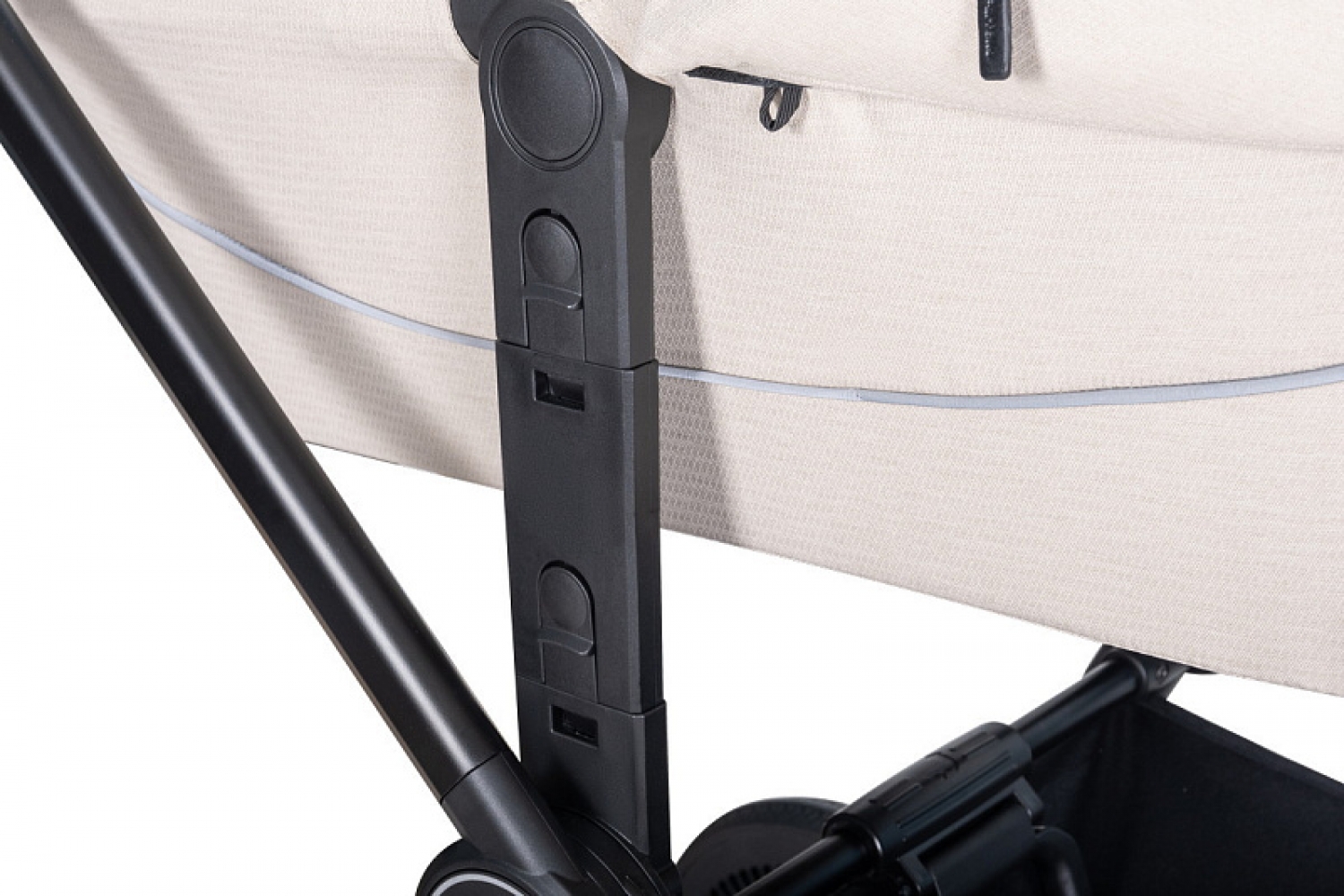 Автолюлька (0-13 кг) имеет трехточечные ремни безопасности с мягкими накладками. Имеет собственный полог для ног. Устанавливается на раму коляски. В машине крепится штатными ремнями против хода движения.