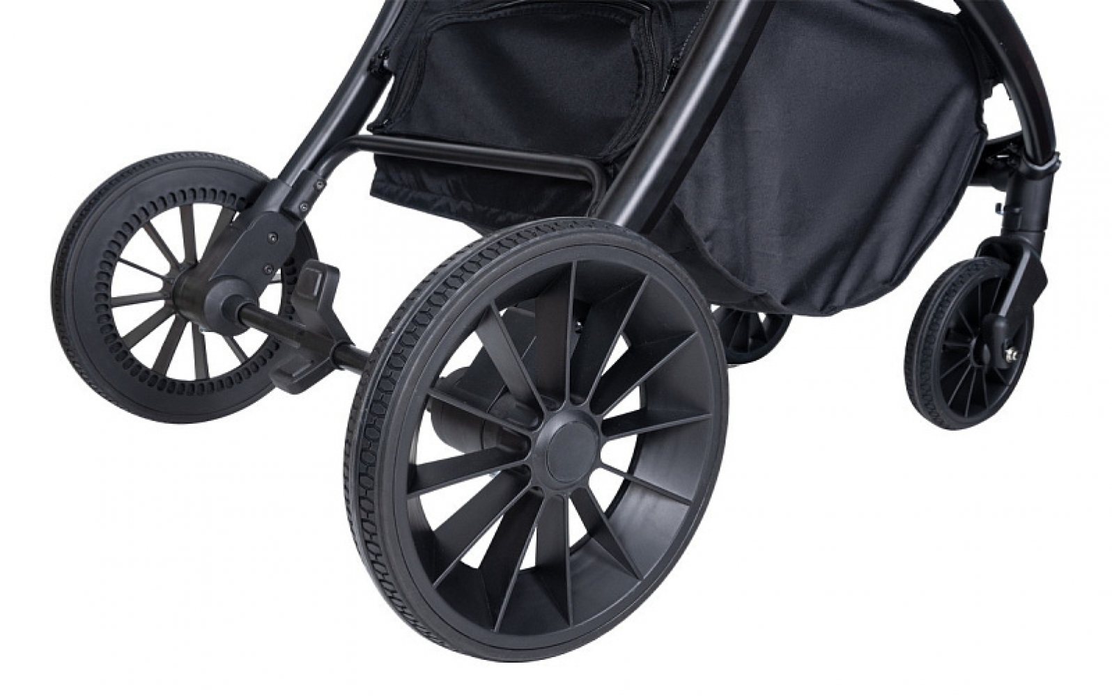 4). Колеса PU устойчивы к проколам, не нужно подкачивать. Передние колеса съемные, поворотные, с функцией фиксации.