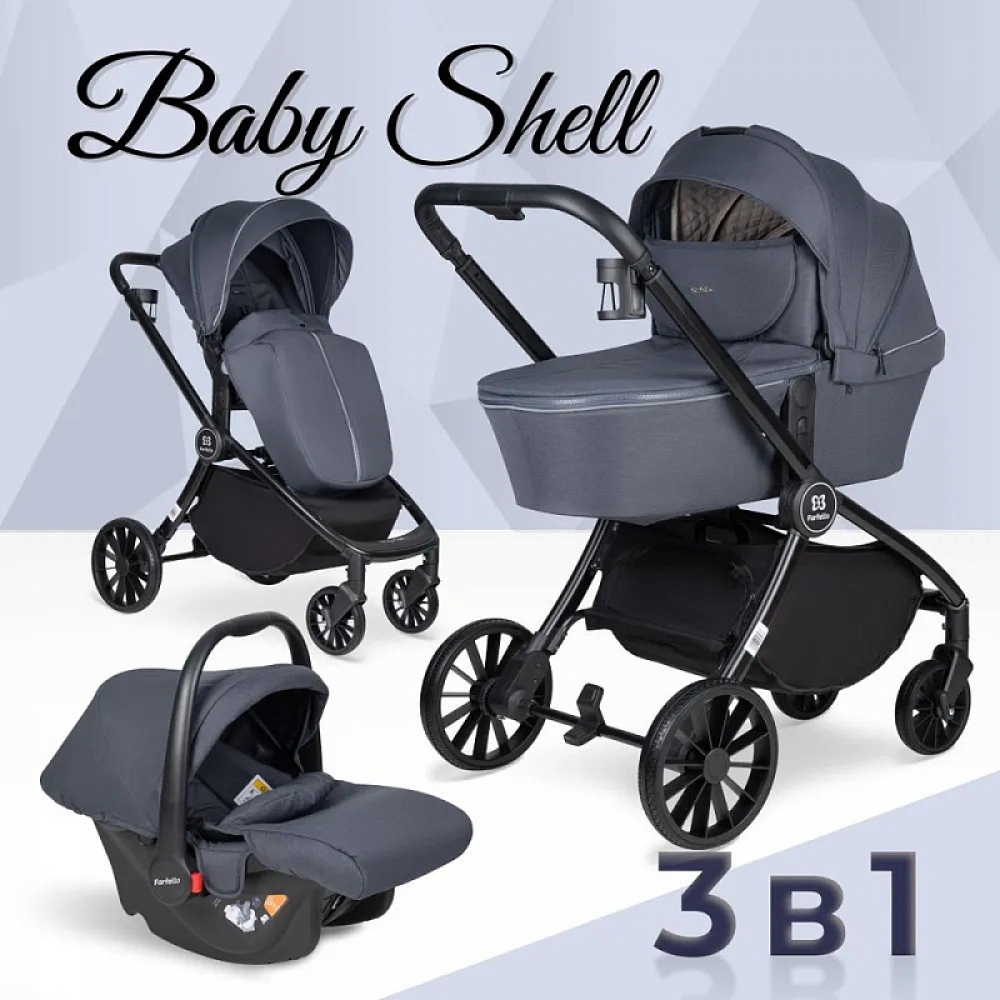 Детская коляска Farfello Baby Shell 3 в 1 2024 серый