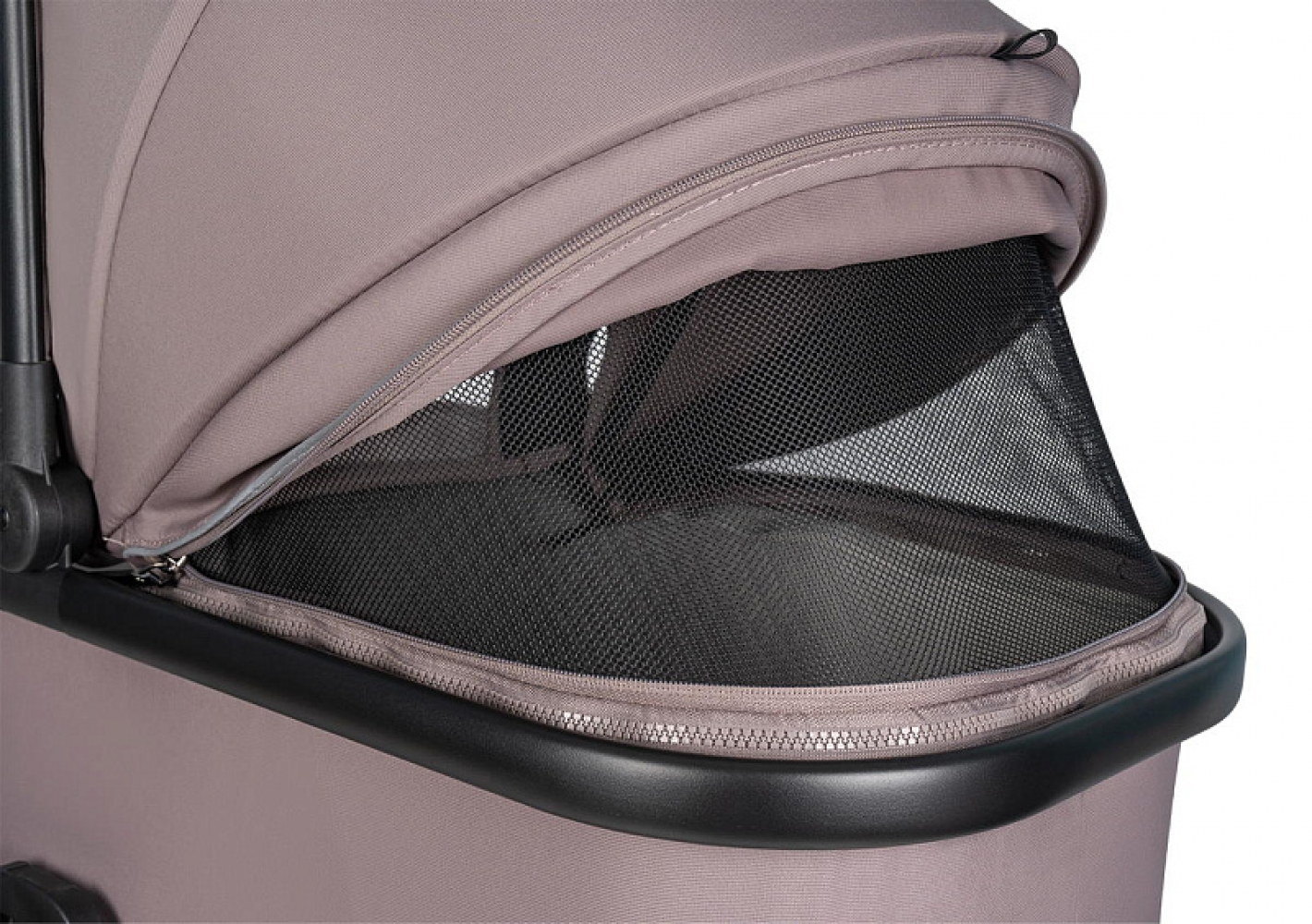 Прогулочный блок (7–36 мес.) – с регулируемой спинкой (3 положения: 100°, 135°, 175°), съемным бампером и пятиточечными ремнями безопасности. Глубокий капюшон со встроенной москитной сеткой обеспечивает защиту в любую погоду.