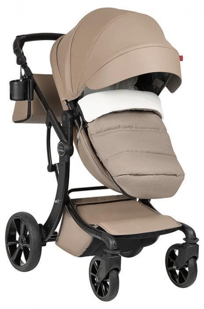 1. Коляска - трансформер Aimile Spring подходит для круглогодичного использования, капюшон и полог для люльки выполнен из экокожи, она проста в уходе (чтобы привести внешний вид в порядок, достаточно протереть влажной салфеткой).