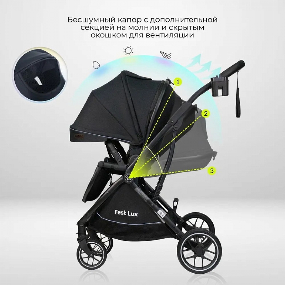 Детская прогулочная коляска Farfello Fest Lux Угольно-черный/Carbon black FL-12 черная рама