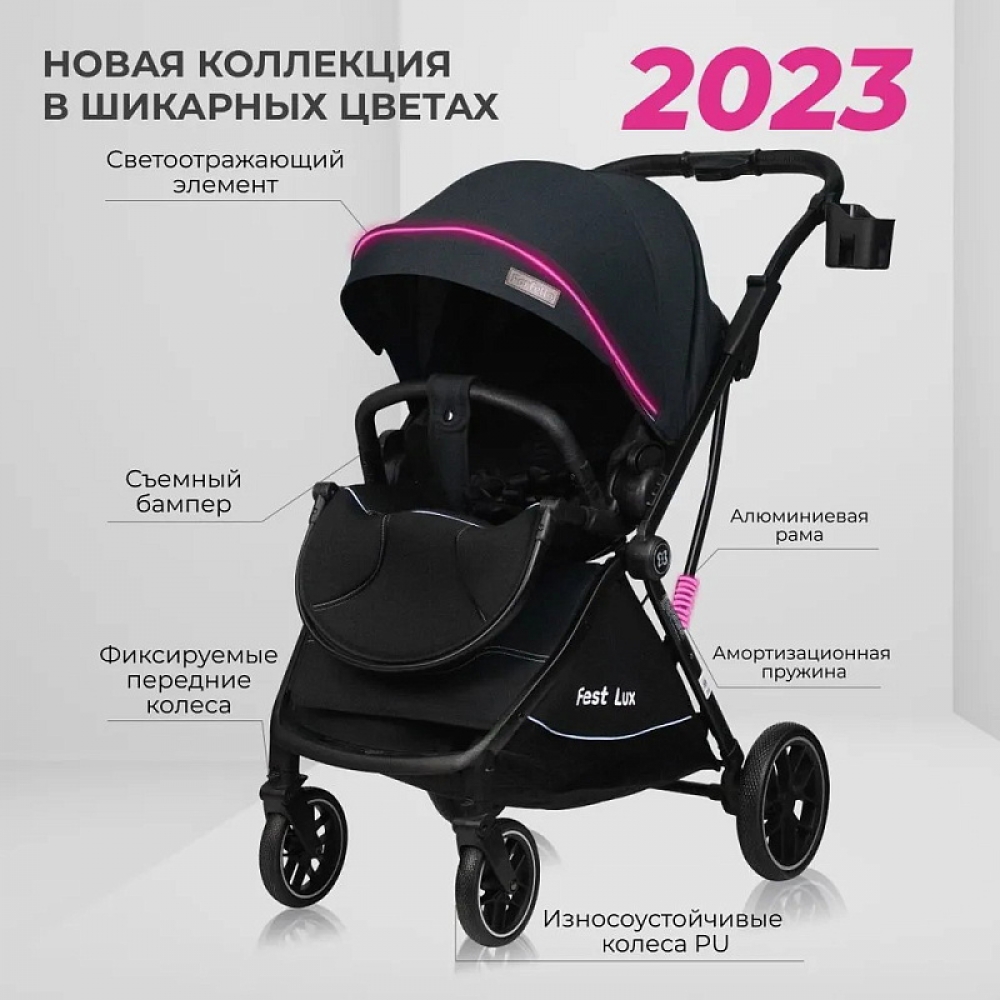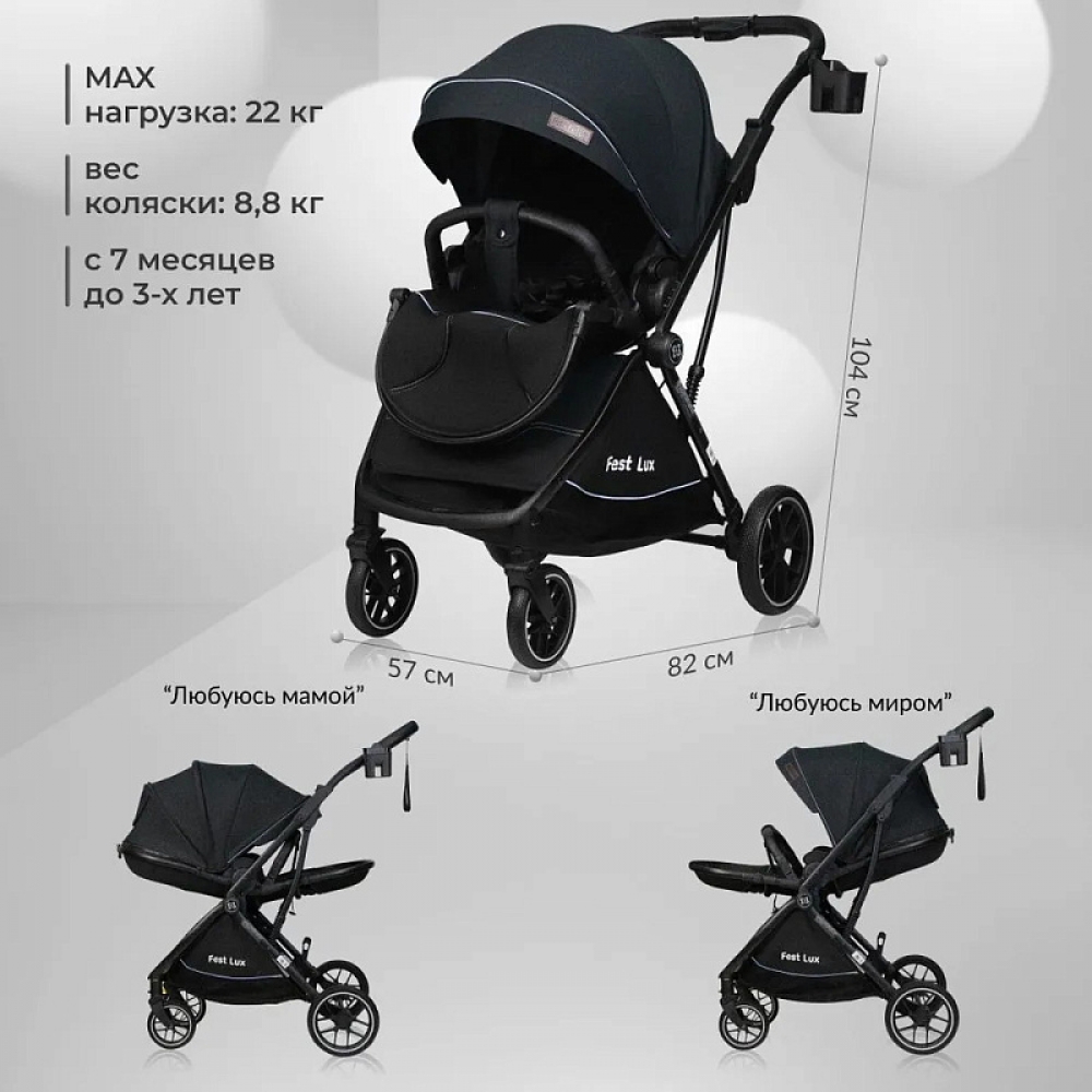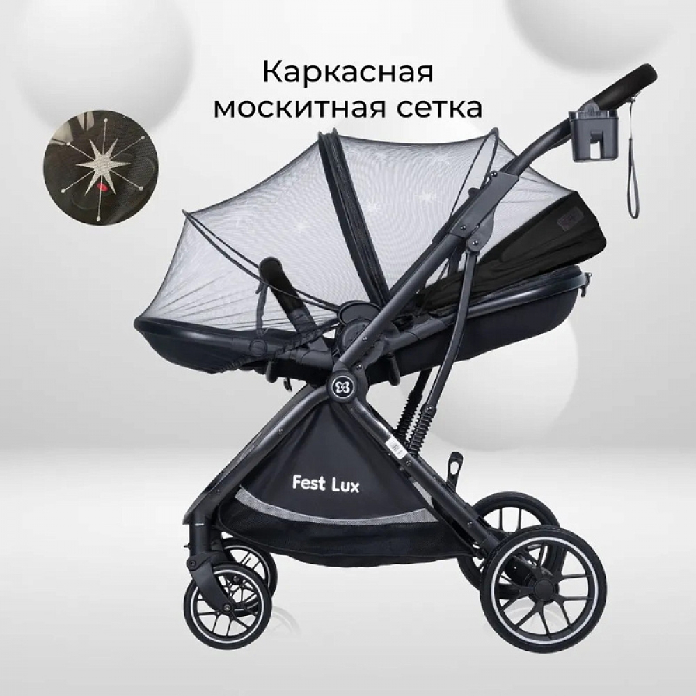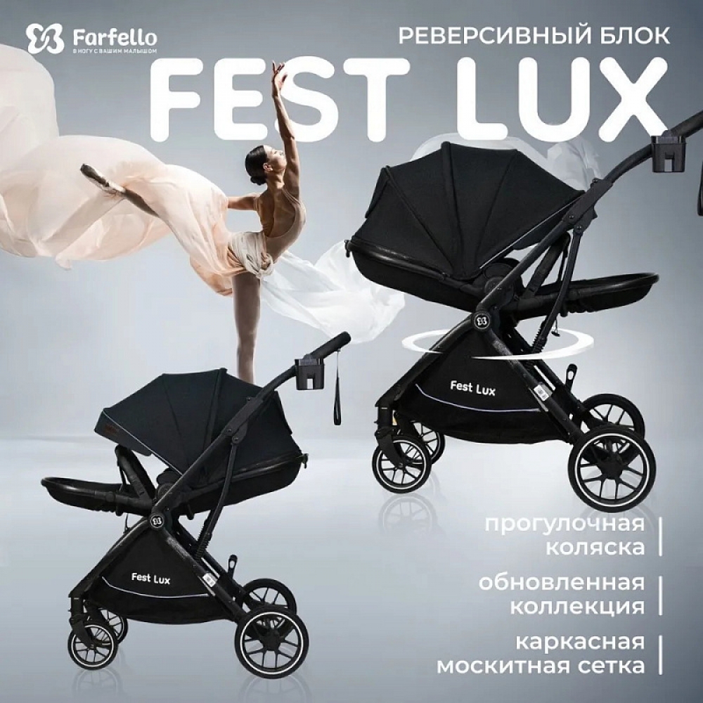 Детская прогулочная коляска Farfello Fest Lux Угольно-черный/Carbon black  FL-12 черная рама
