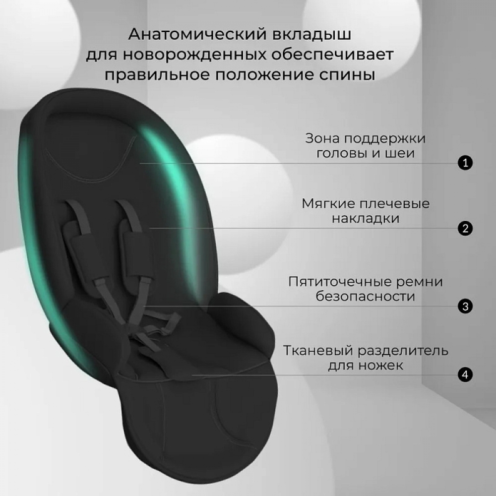 Внутренние ремни5-ти точечные с мягкими накладками, регулируются по высоте
