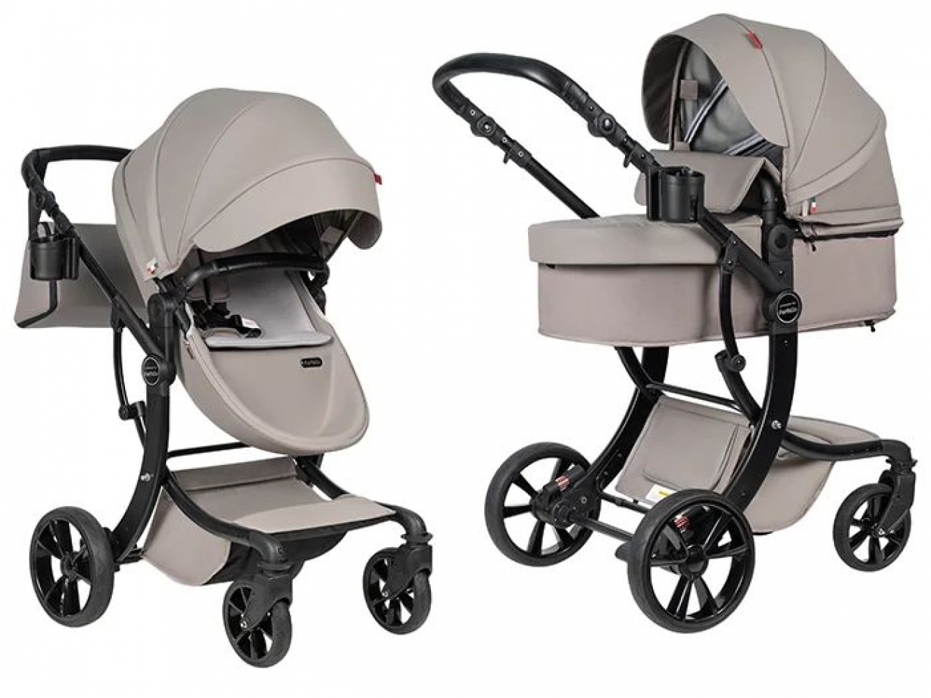 1. Коляска-трансформер Aimile PRO подходит для использования круглый год. Капюшон и полог для люльки выполнены из экокожи, что делает уход за ними очень простым - достаточно протереть влажной салфеткой.