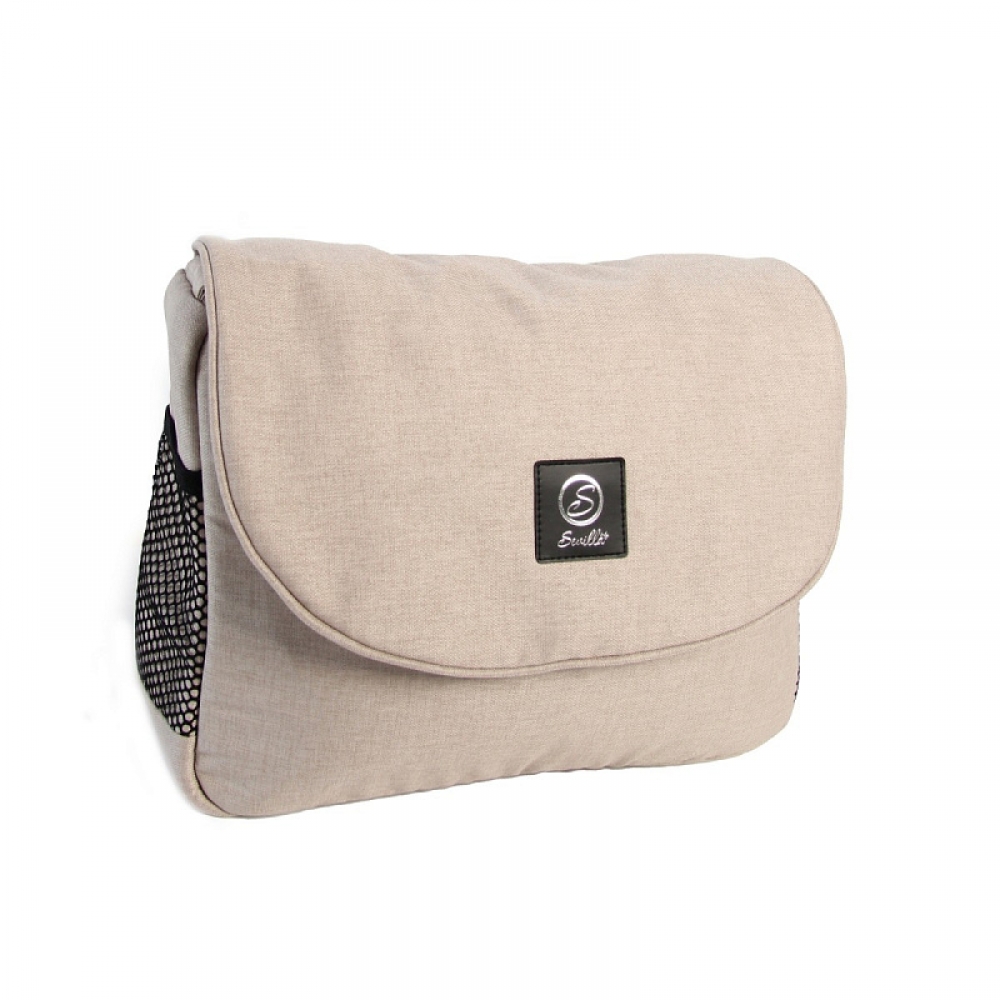 Коляска укомплектована стильной вместительной сумкой для мамы, закрытой корзиной для покупок выполненной из экокожи, съёмным держателем для бутылочек, москитной сеткой и плотным дождевиком.