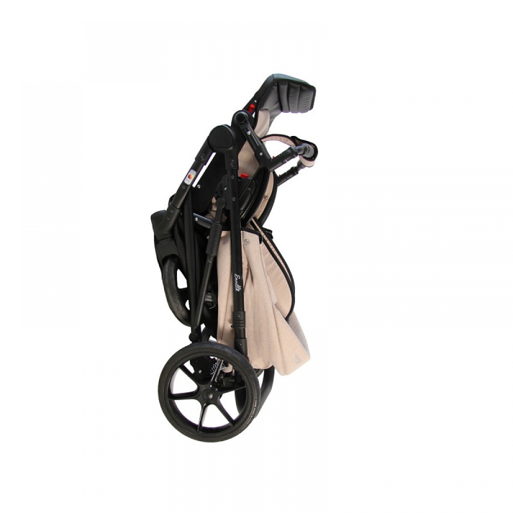 Рама коляски компактно складывается и может быть сложена даже с установленным прогулочным блоком.